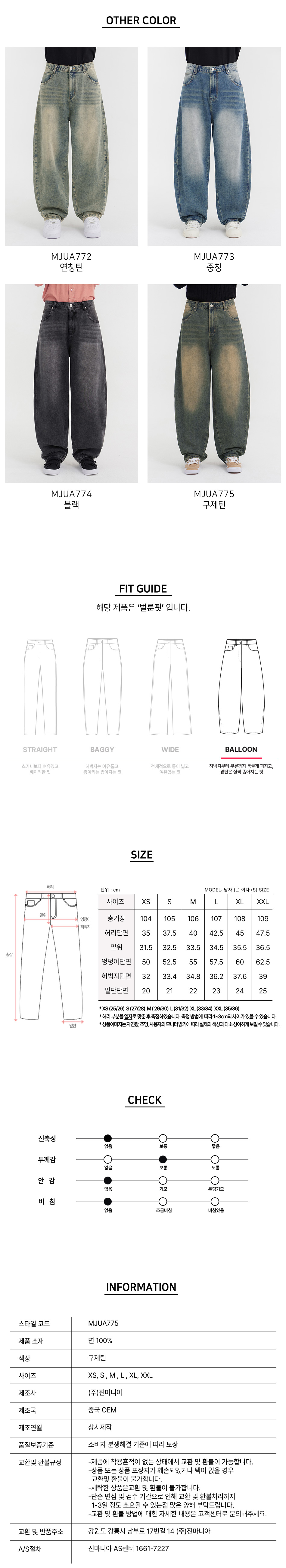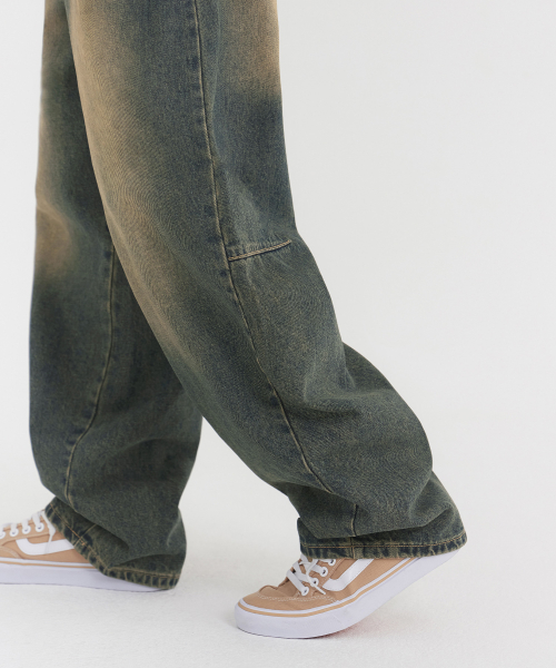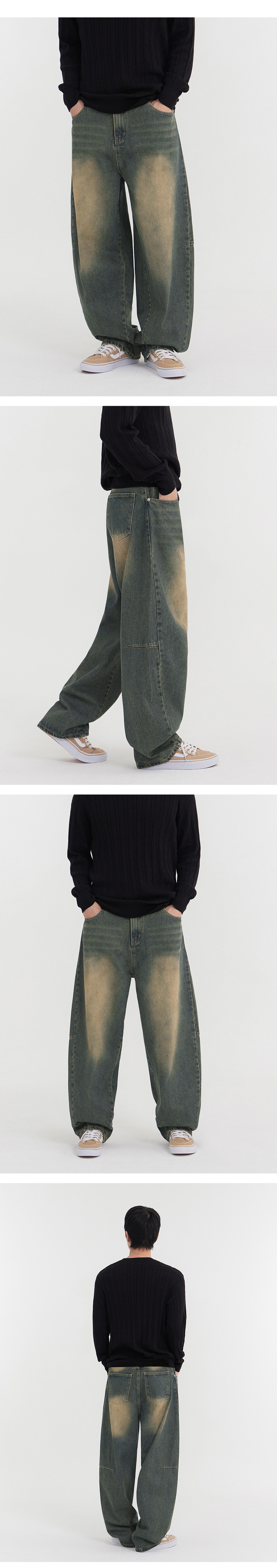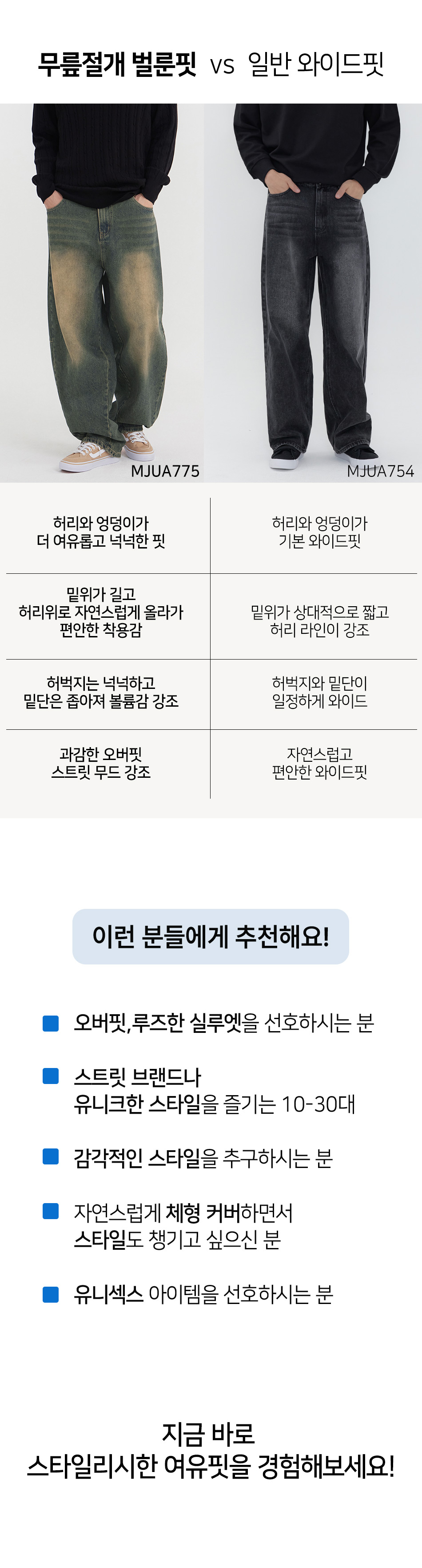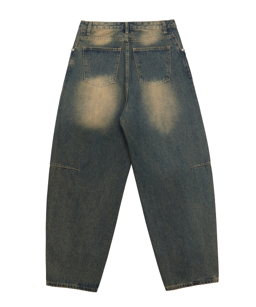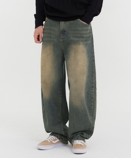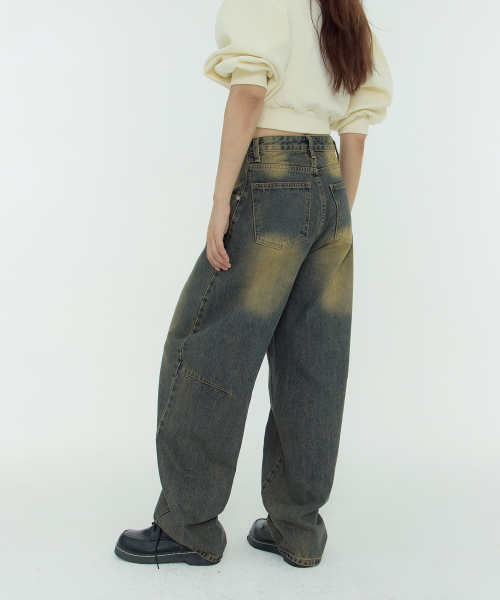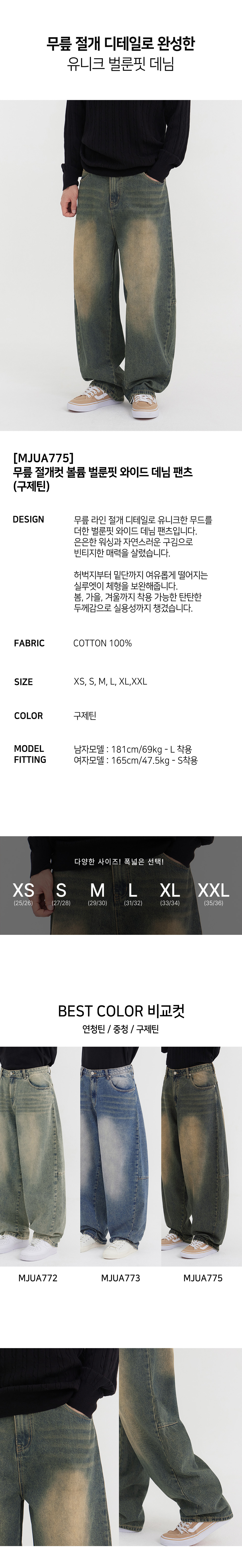 무릎 절개컷 볼륨 벌룬핏 와이드 데님 팬츠 (구제틴)