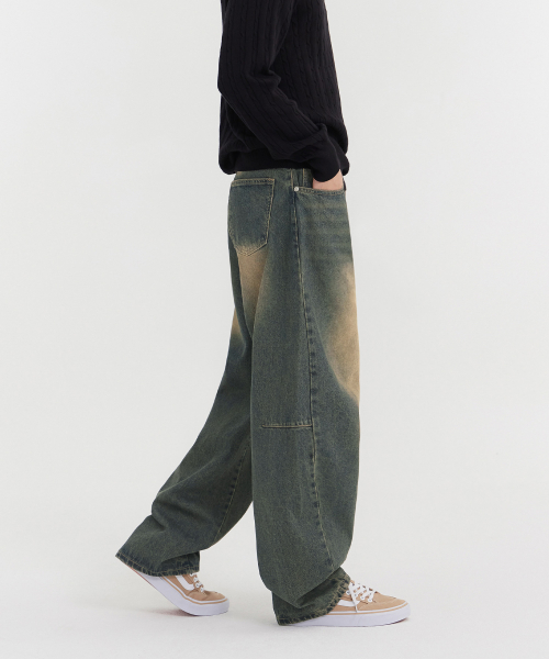 빈티지 워시드 와이드 데님 팬츠(샌드블루) (BLUE)
