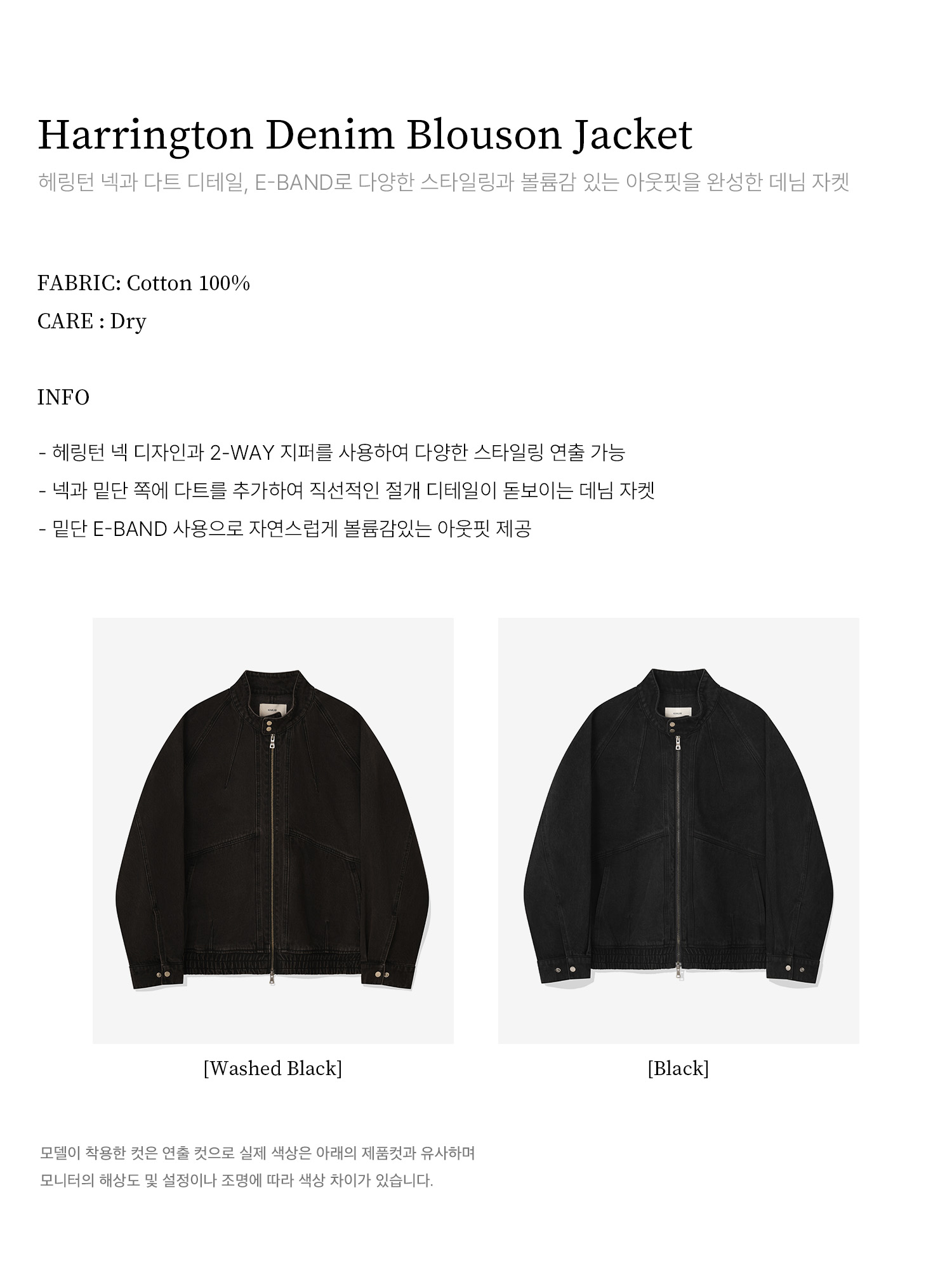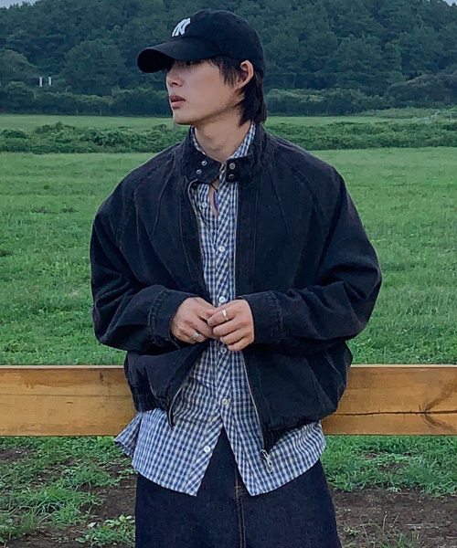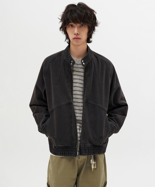 헤링턴 데님 블루종 자켓_워시드 블랙