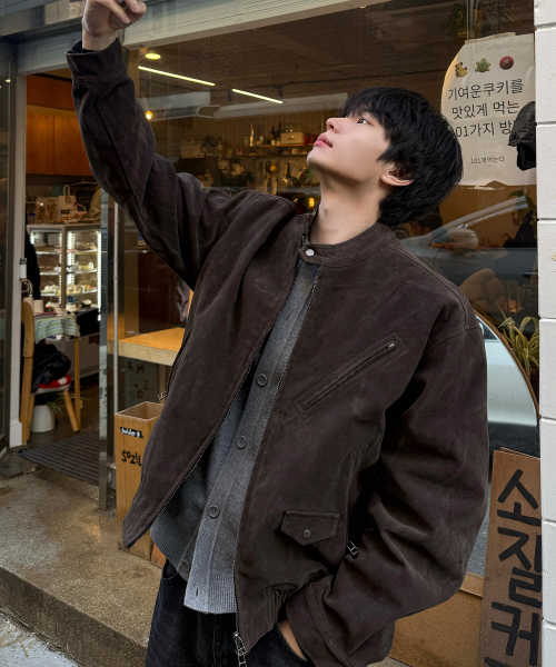 스웨이드 바이커 자켓_브라운