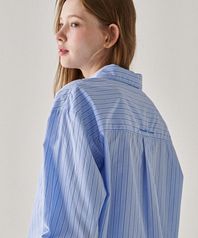 ROUND COLLAR POCKET SHIRT BLUE STRIPE