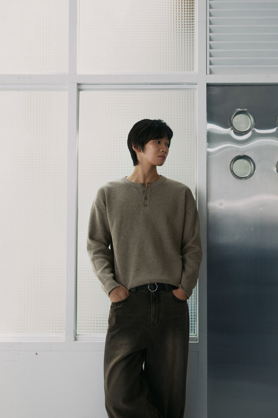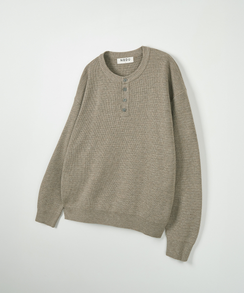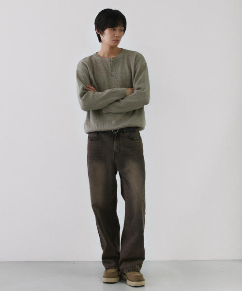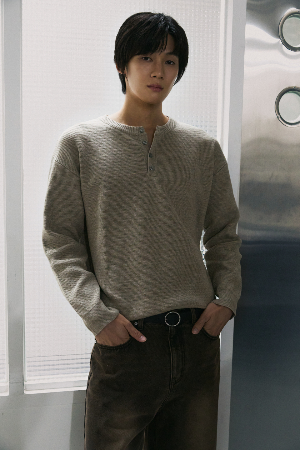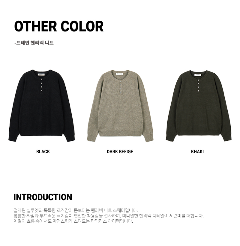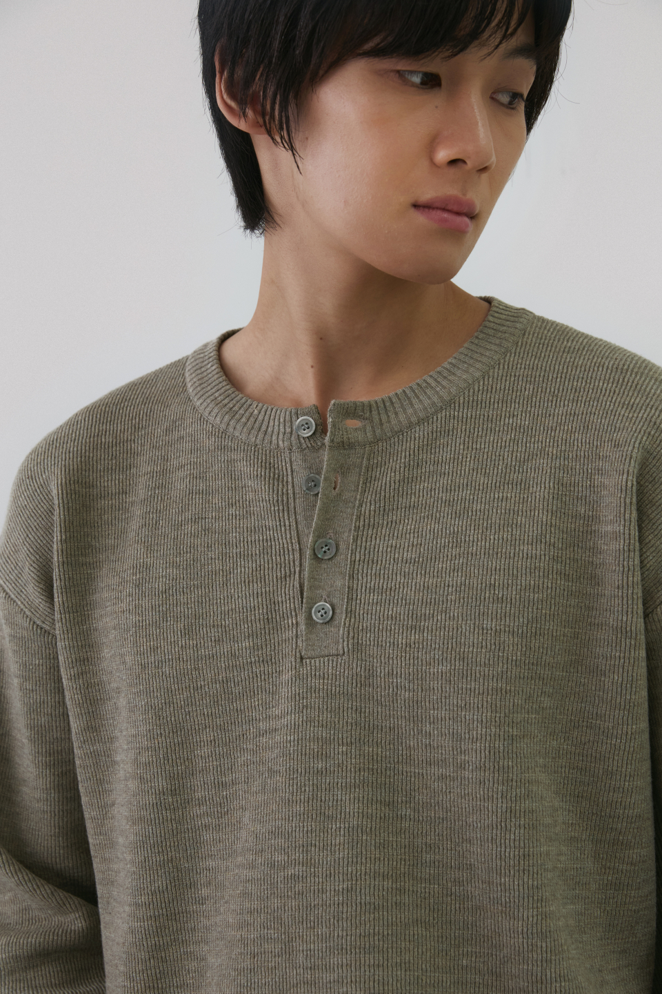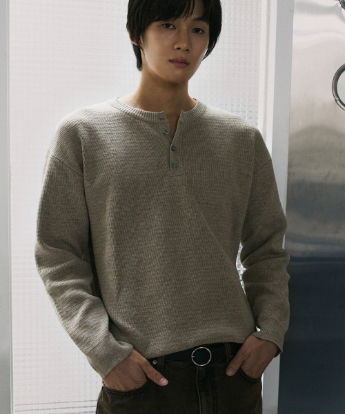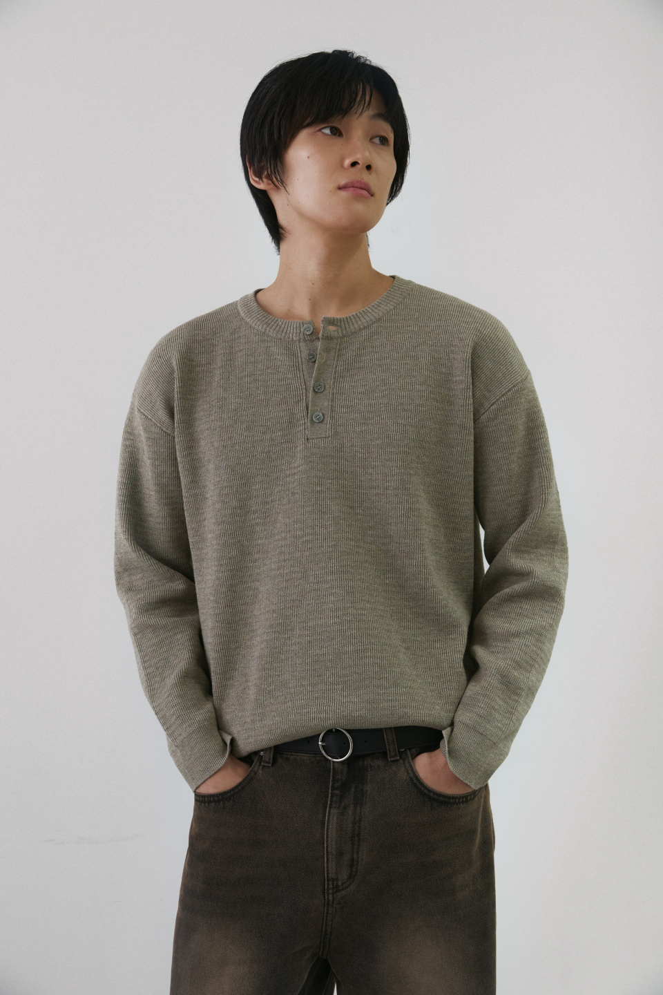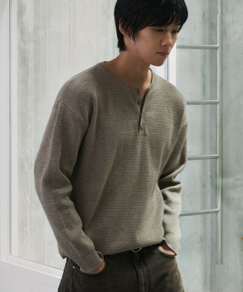 레스티드 세미 오버핏 헨리넥 니트 [차콜]