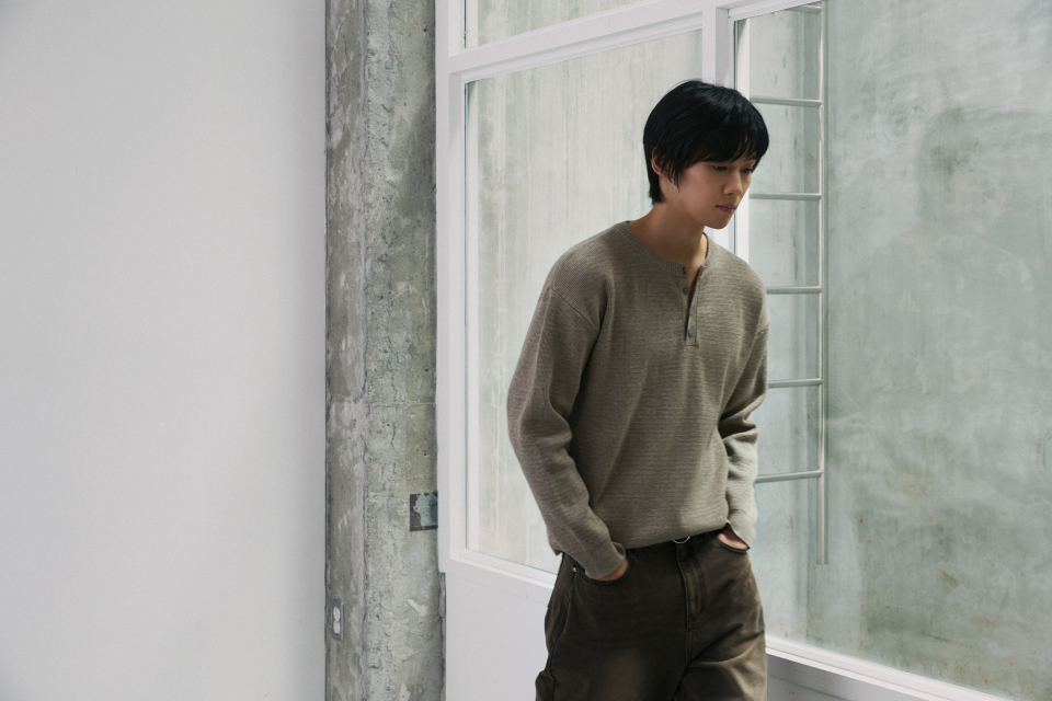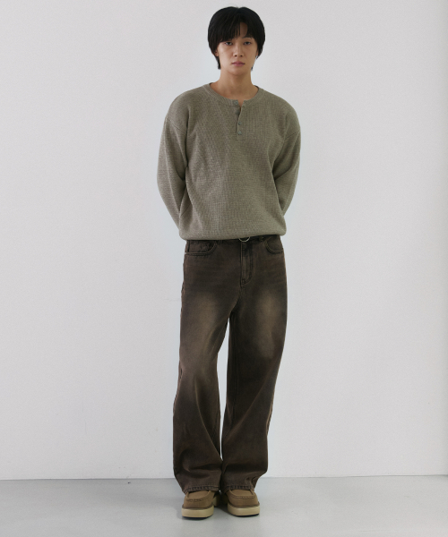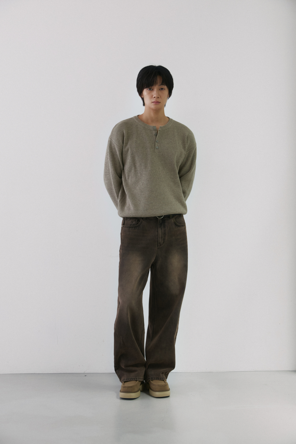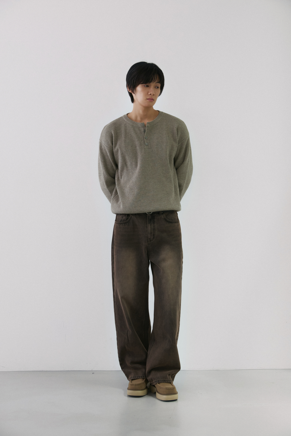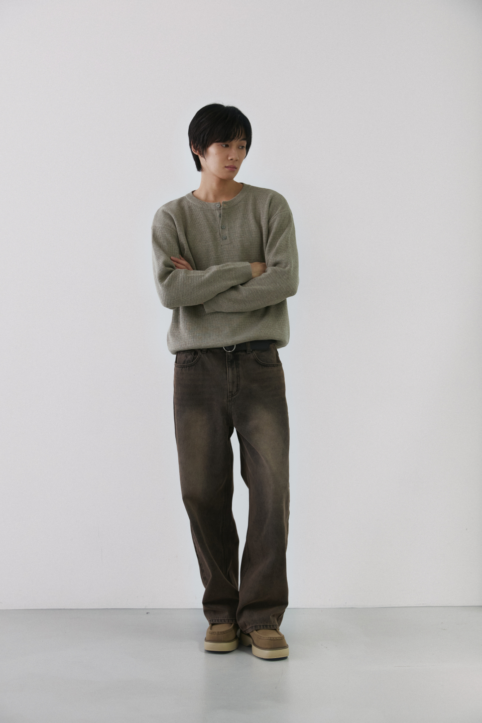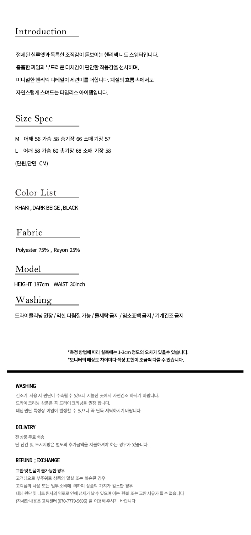 레스티드 세미 오버핏 헨리넥 니트 [차콜]