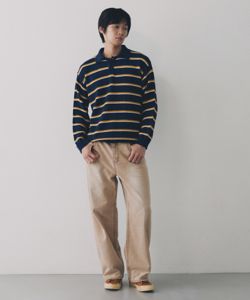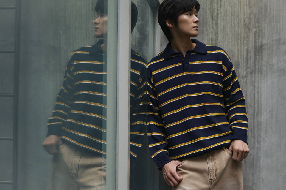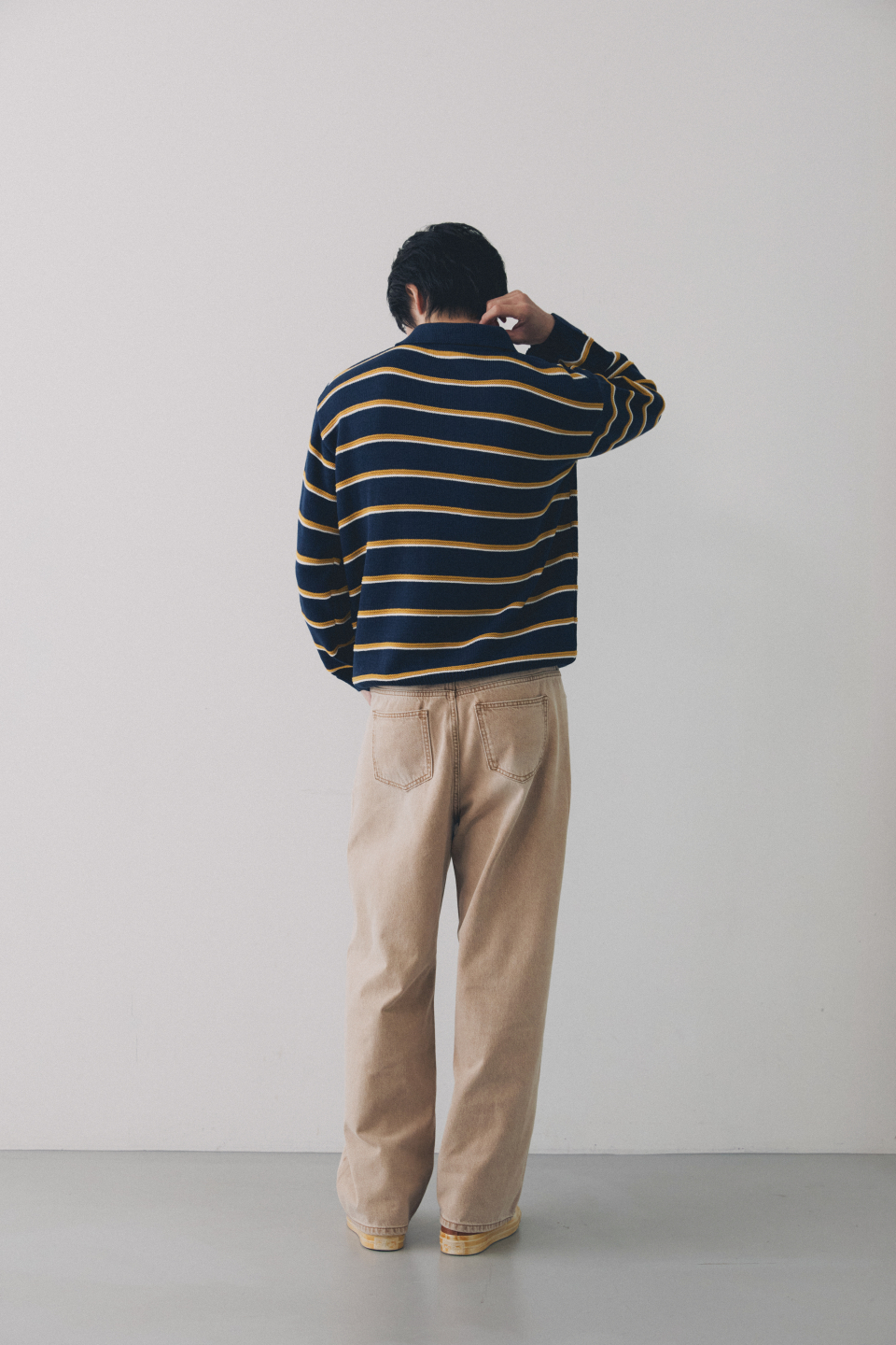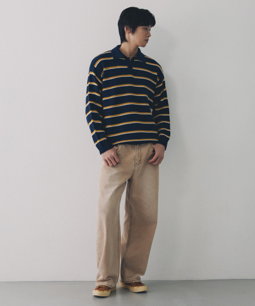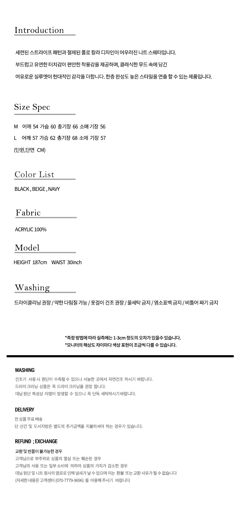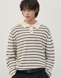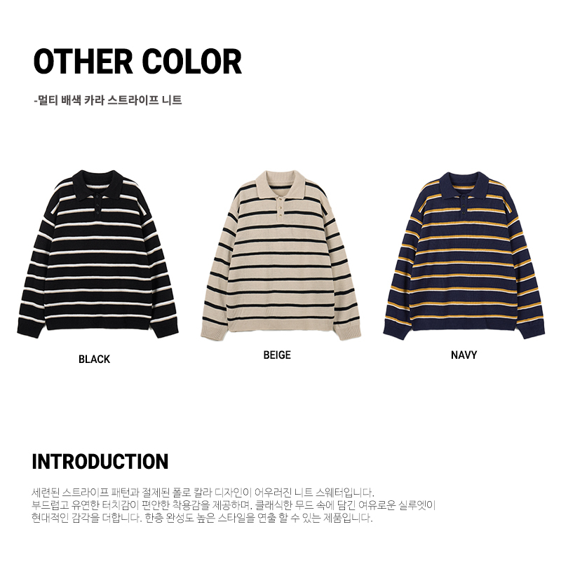 이지온 세미 오버핏 스트라이프 카라 니트 [아이보리]