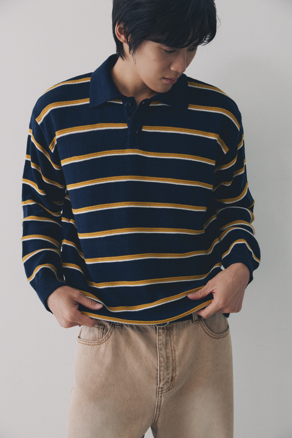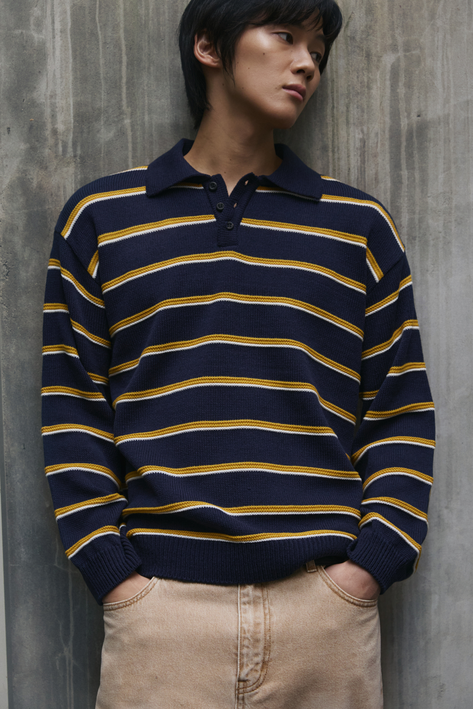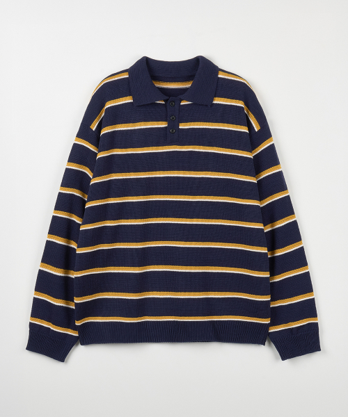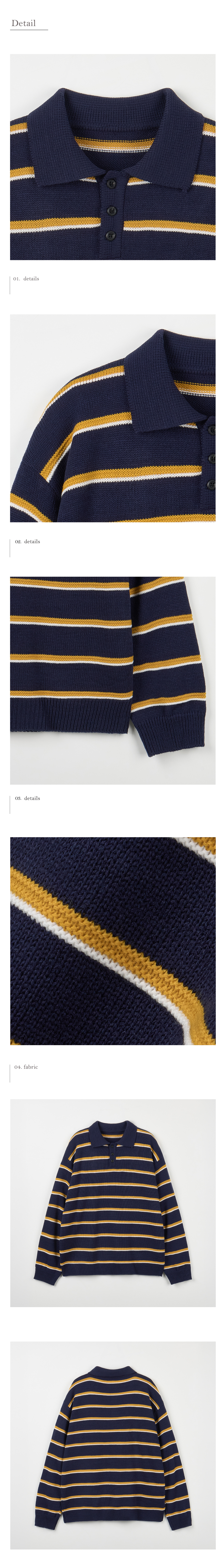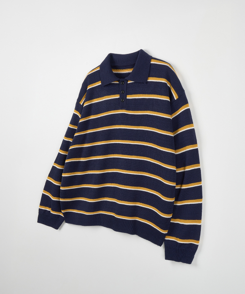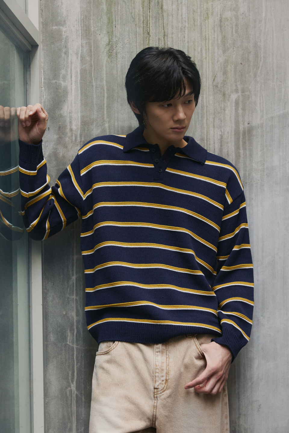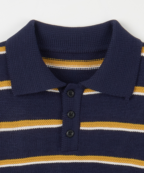 멀티 배색 카라 스트라이프 니트 티셔츠 [네이비]