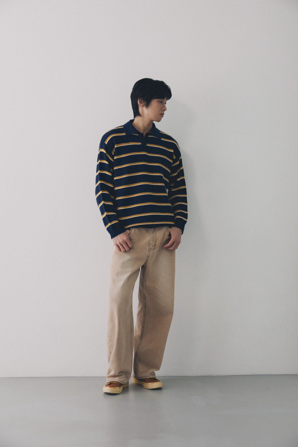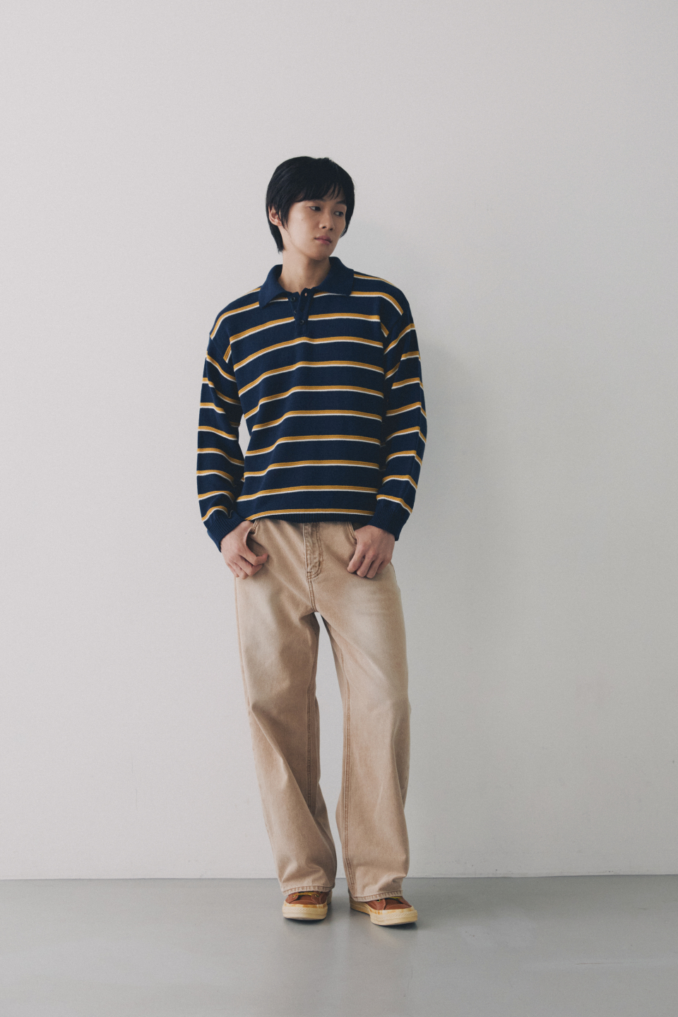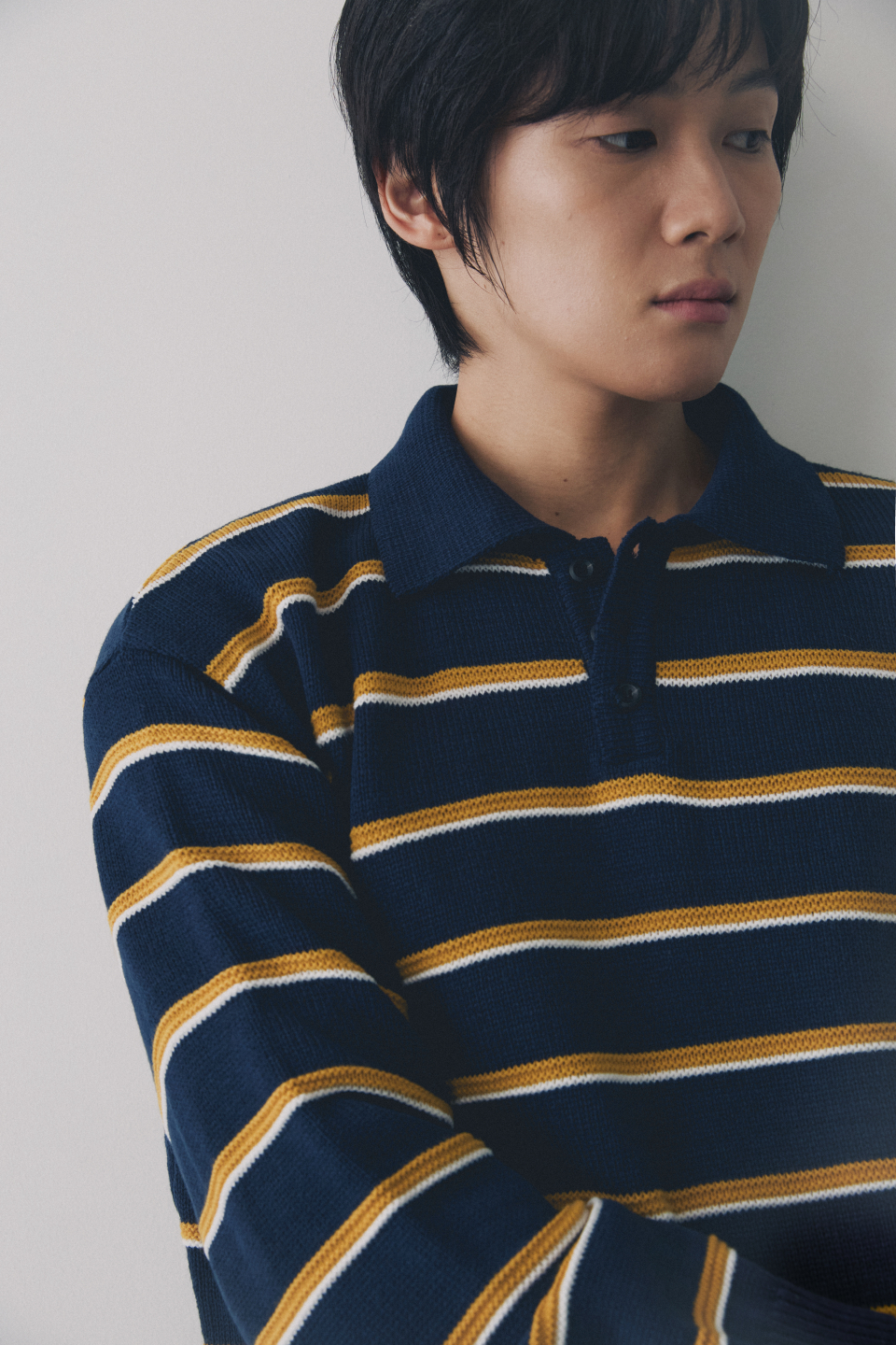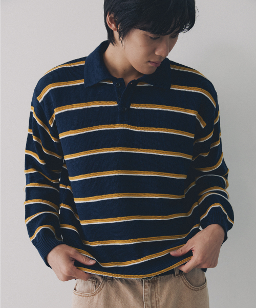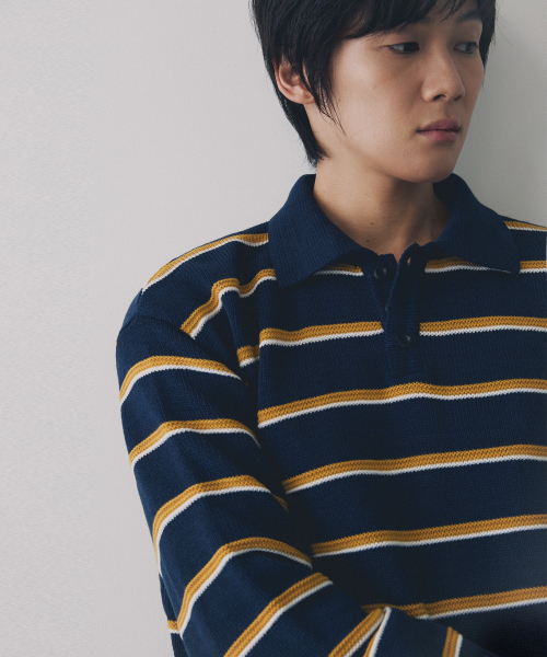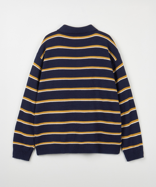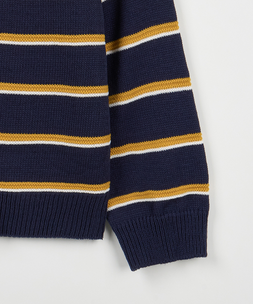 멀티 배색 카라 스트라이프 니트 티셔츠 [네이비]