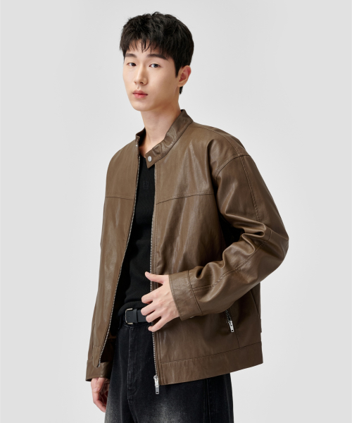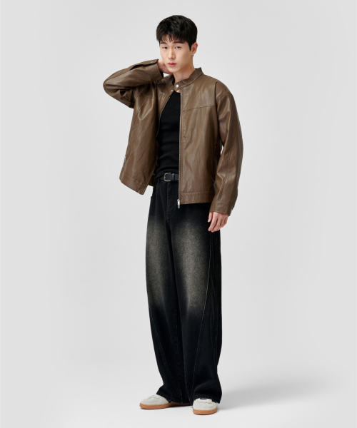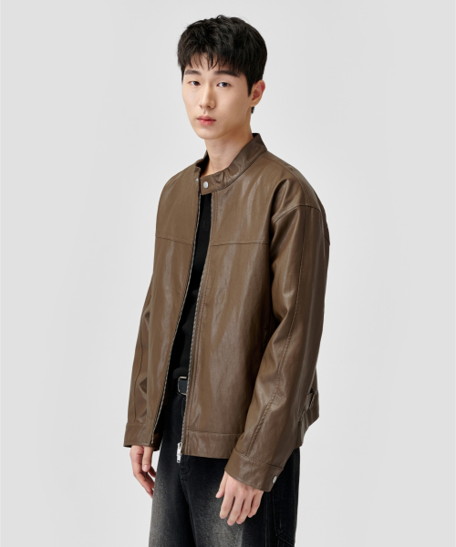 465-3 VEGAN LEATHER OVERFIT JACKET_BLACK