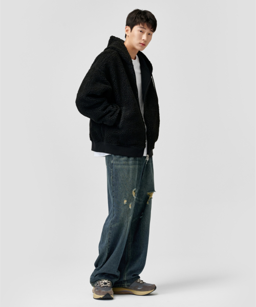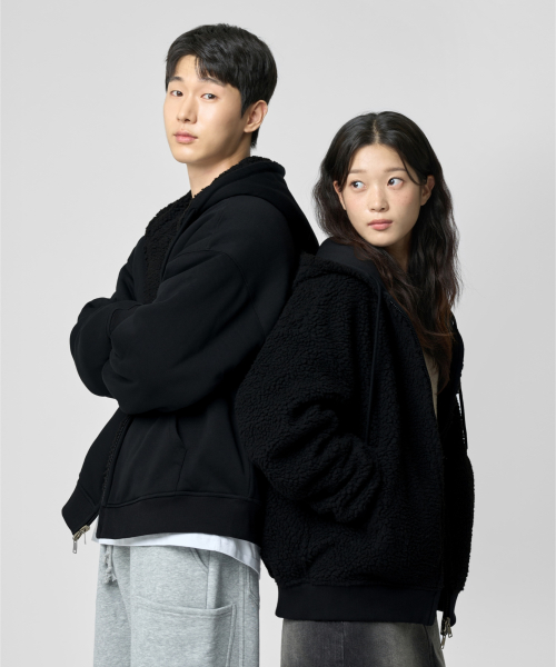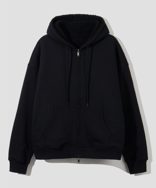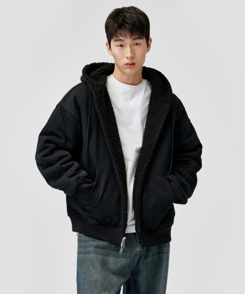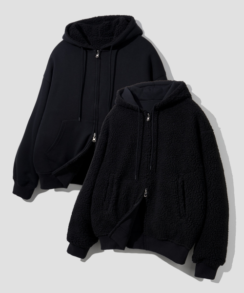 리버시블 헤비 플리스 보아 후드 집업 [블랙]