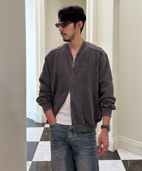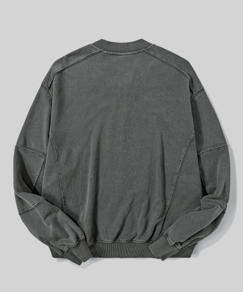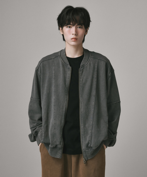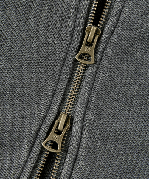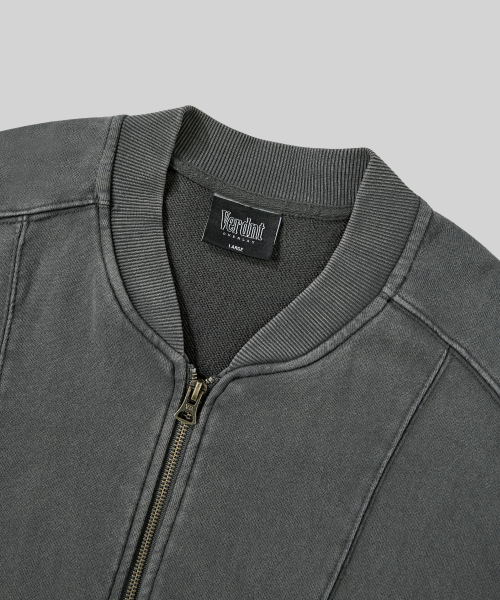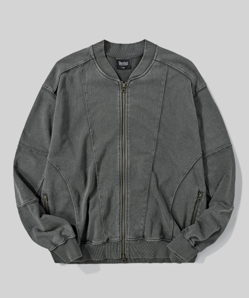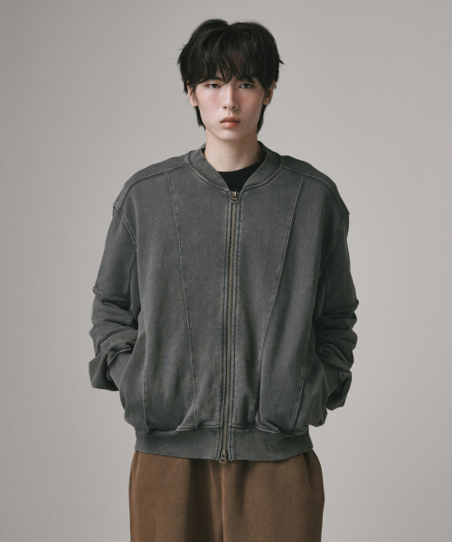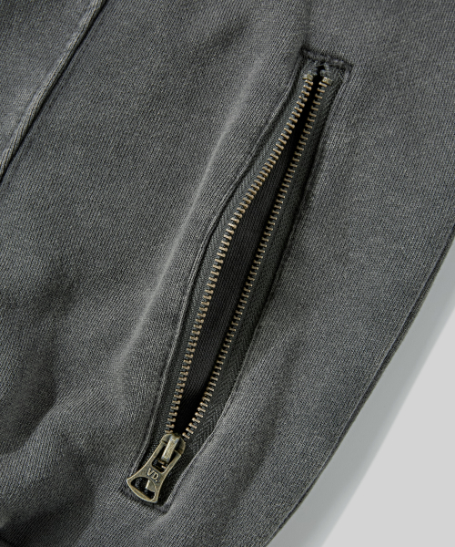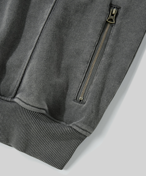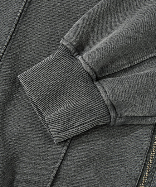 2WAY 절개 라인 빈티지 피그먼트 스웨트 집업 [챠콜]