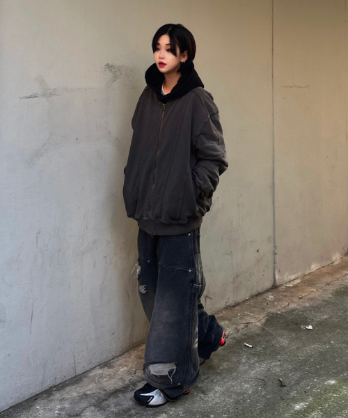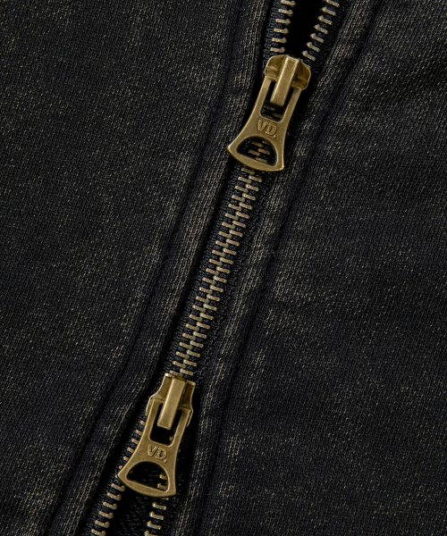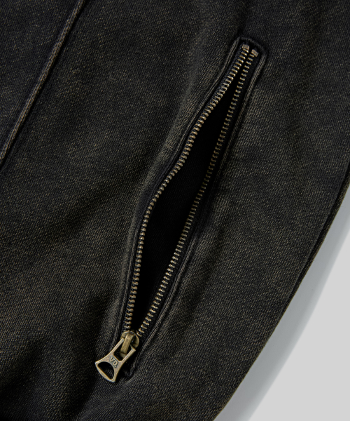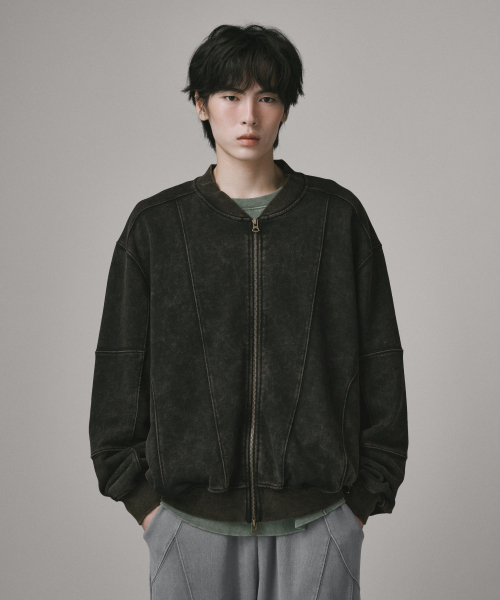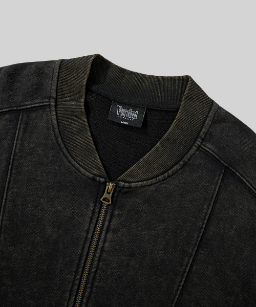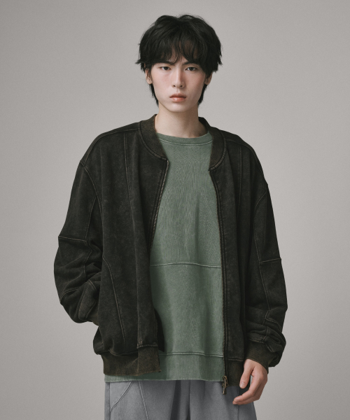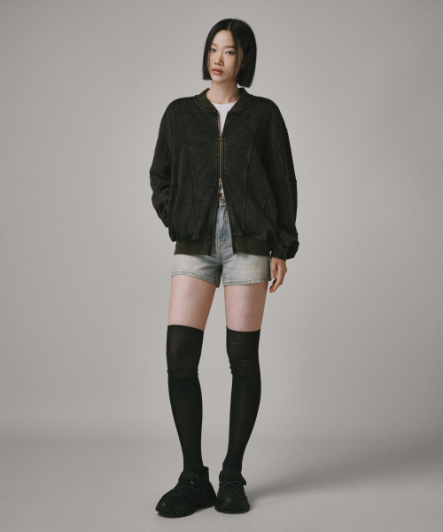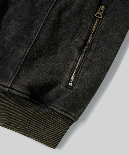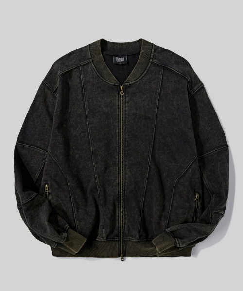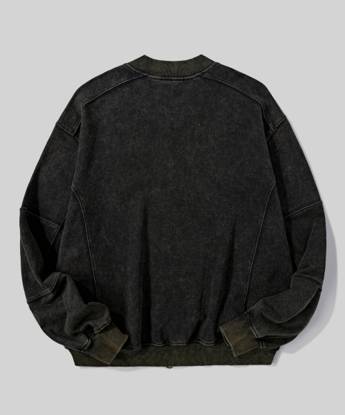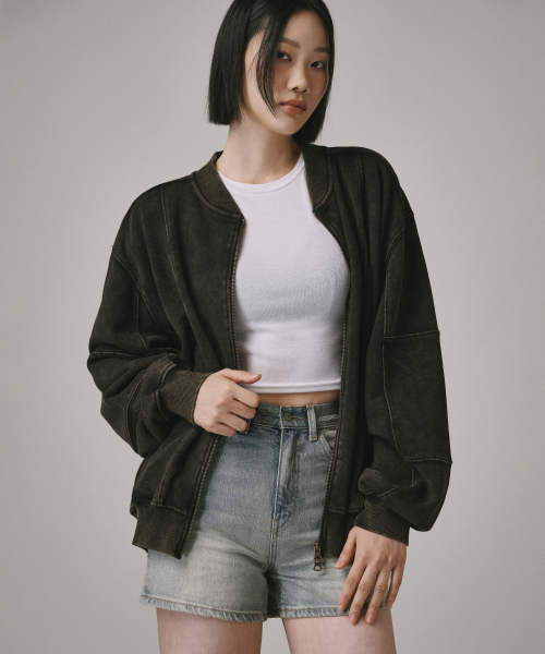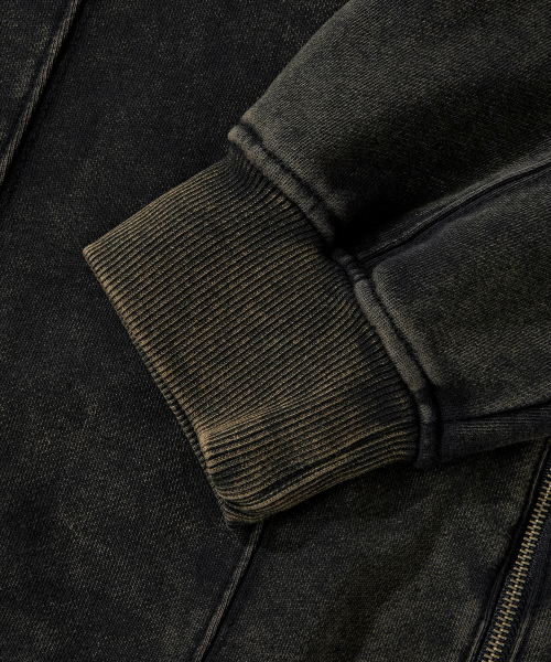 2WAY 절개 라인 빈티지 피그먼트 스웨트 집업 [블랙]