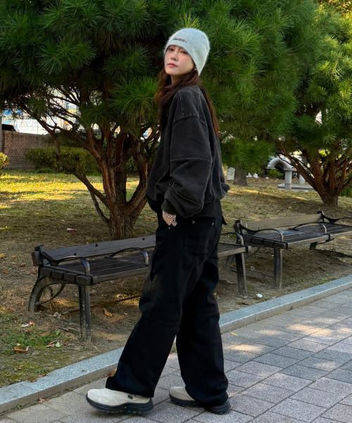 87-STAN047 벌룬핏 워싱 와이드 데님팬츠 빈티지 블랙