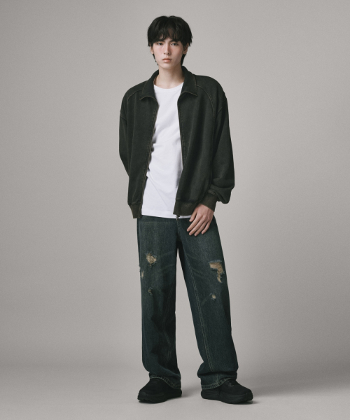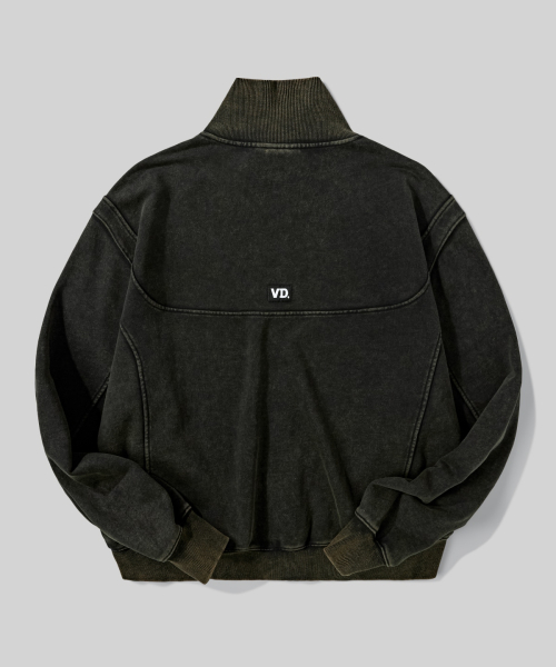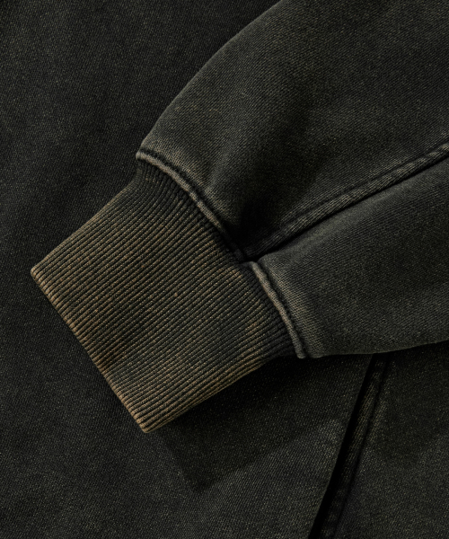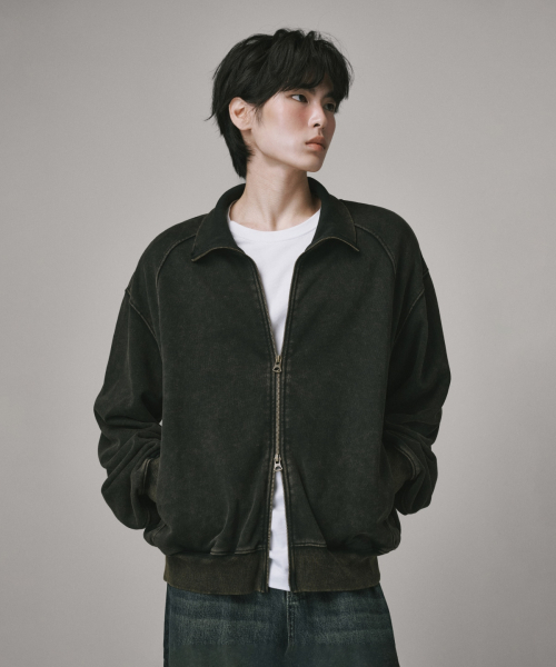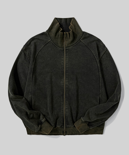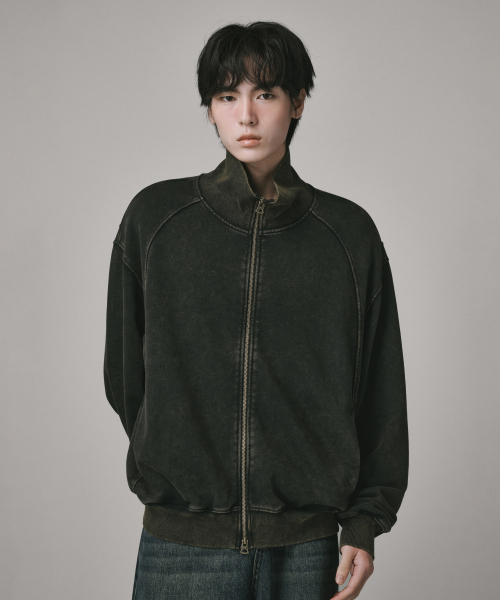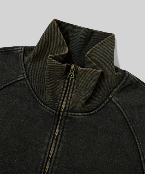 2WAY 절개 라인 빈티지 피그먼트 스웨트 집업 [블랙]