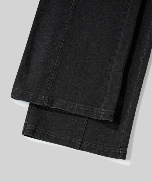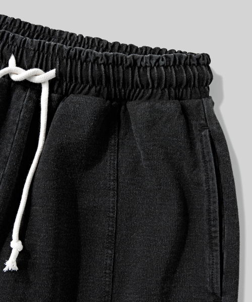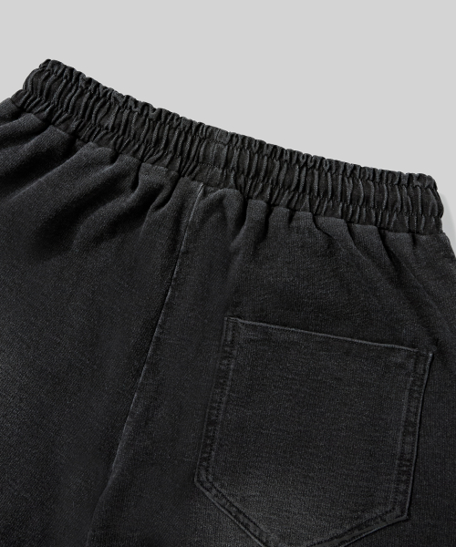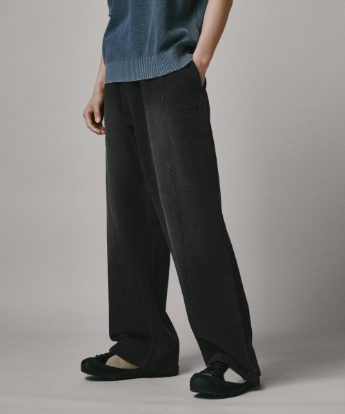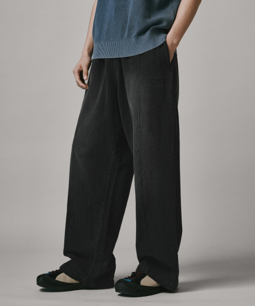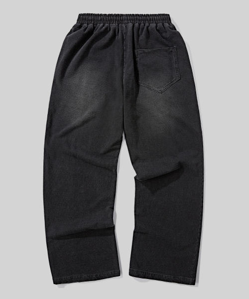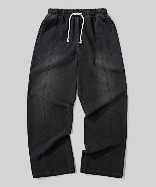 프론트 라인 워시드 와이드 스웨트 팬츠 [블랙]