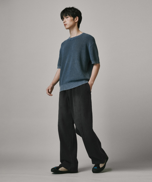 프론트 라인 워시드 와이드 스웨트 팬츠 [인디고]