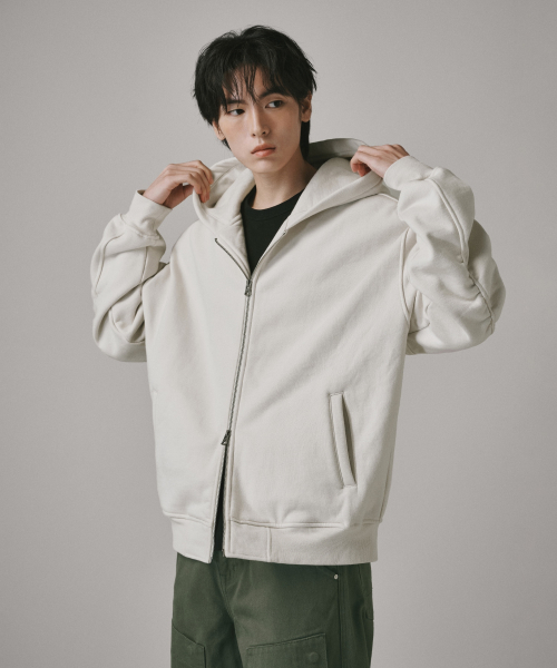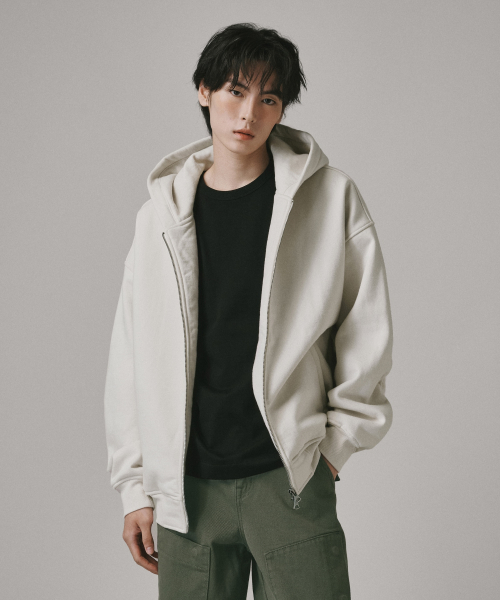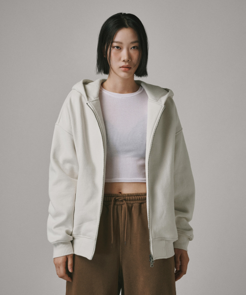 투웨이 메탈 지퍼 스웻 후드 집업 [아이보리]