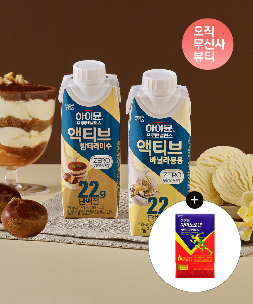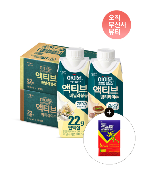 프로틴 밸런스 액티브 바닐라봉봉 X 밤티라미수 세트(각 1박스/ 총 36팩) +아미노포텐 체험팩 증정