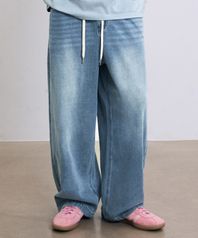 데미지 워시드 데님 밴딩 팬츠-스카이블루