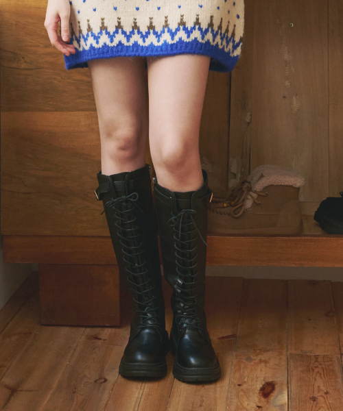 플랫폼 레이스업 롱 워커 부츠 EBAL157760