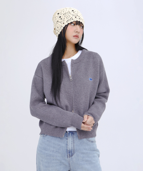 코튼 투웨이 벌룬 니트 집업 [브라운]