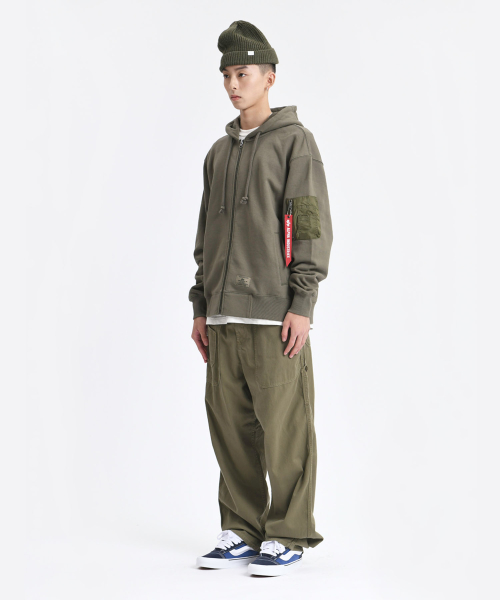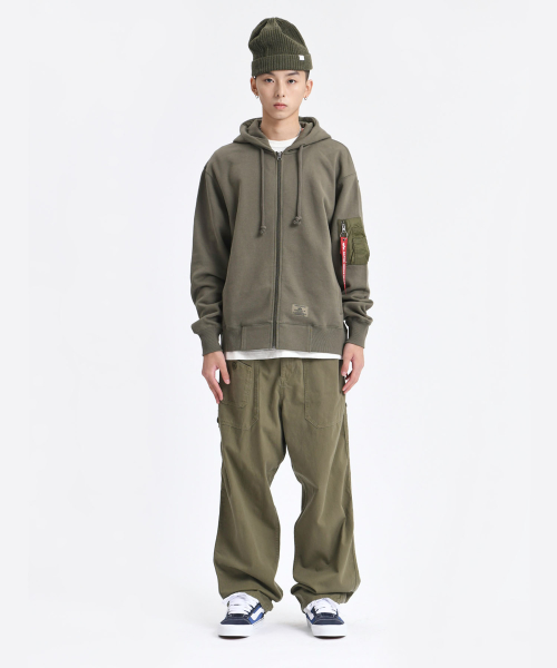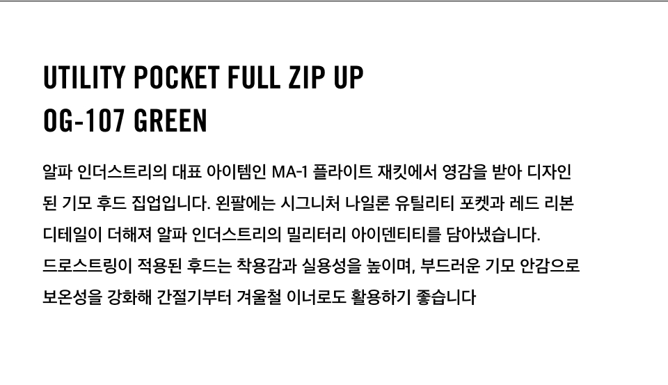 알파 인더스트리(ALPHA INDUSTRIES)는 1959년 테네시주 녹스빌의 한 공장에서 시작한 브랜드입니다. 미국의 육·해·공군 및 해병대원을 보호하는 플라이트 재킷이나 코트를 제공하는 공식 공급업체(오피셜 서플라이어)로 엄격한 밀스펙(군대에서 정해 놓은 기준)을 엄수하며 생산합니다. 특히 알파 인더스트리는 다른 업체와 달리 군수품과 일반인에게 판매되는 재킷에 등급의 차이가 없습니다. 알파 인더스트리의 제품은 미국은 물론 전 세계 각지의 미군 기지에서 활동하는 군인이나 파일럿, 지상 요원이 입는 재킷과 같은 그레이드의 아이템입니다.