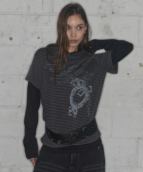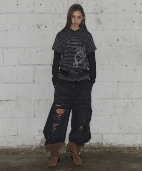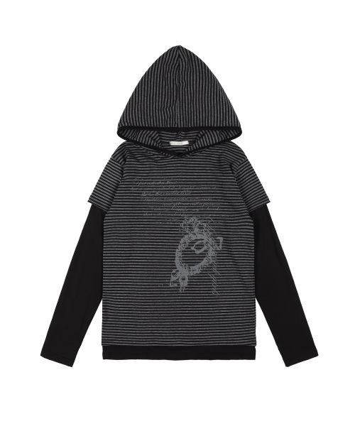 스트라이프 레이어드 후드 (BLACK) F25ZB024