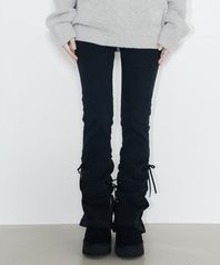 리본 셔링 부츠컷 피치코튼팬츠_블랙