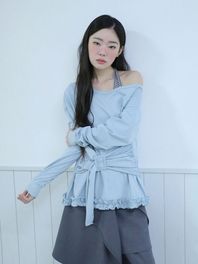 RUFFLE HOODIE ZIP-UP LIGHT GRAY