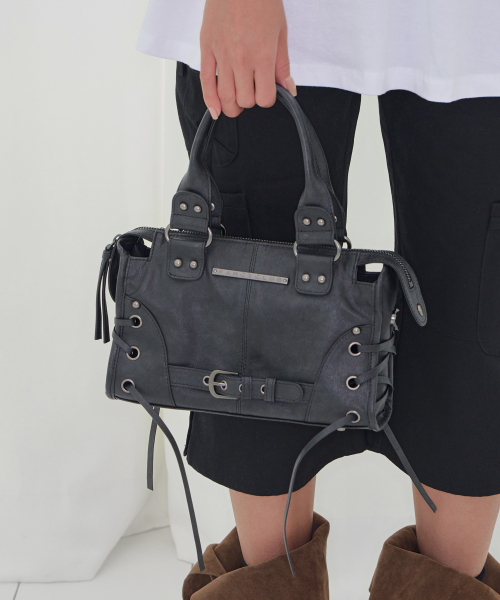 벨티드 워싱 레더 미니백 (BLACK) F26QE991