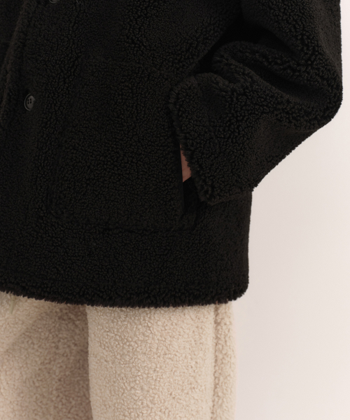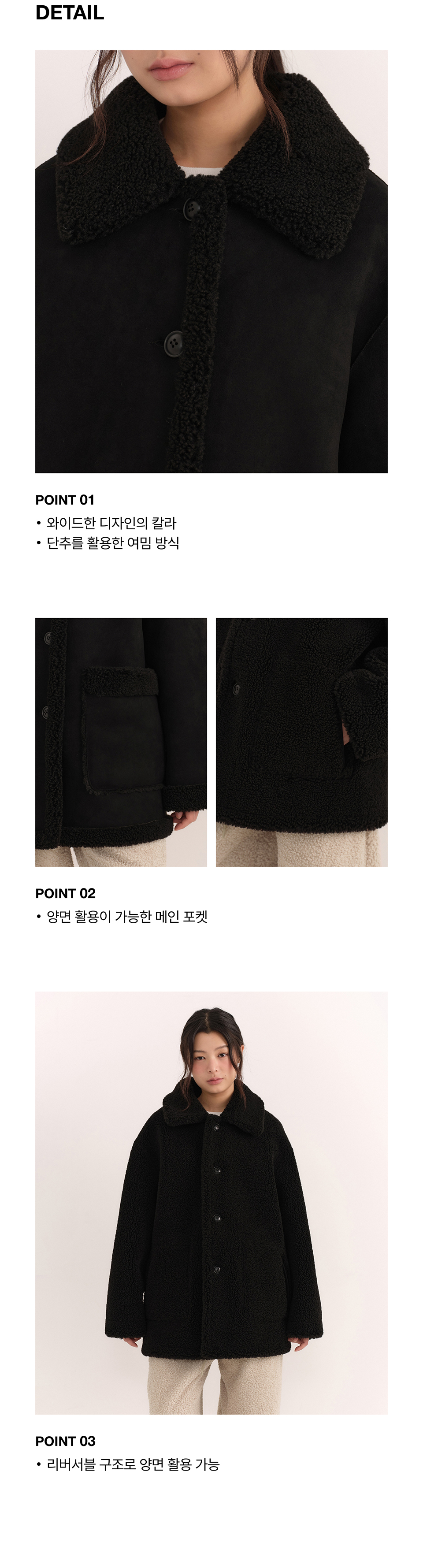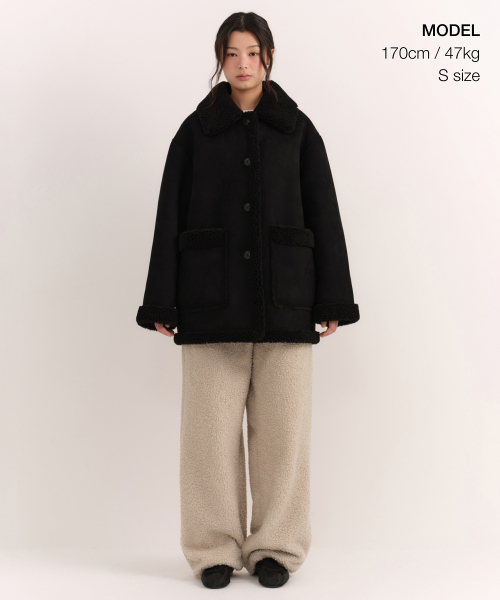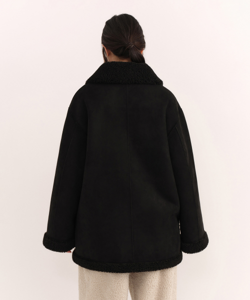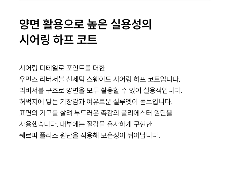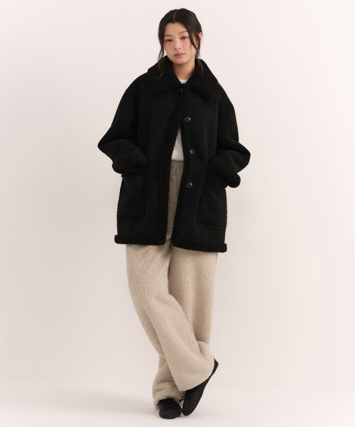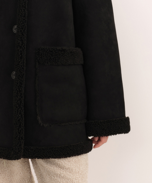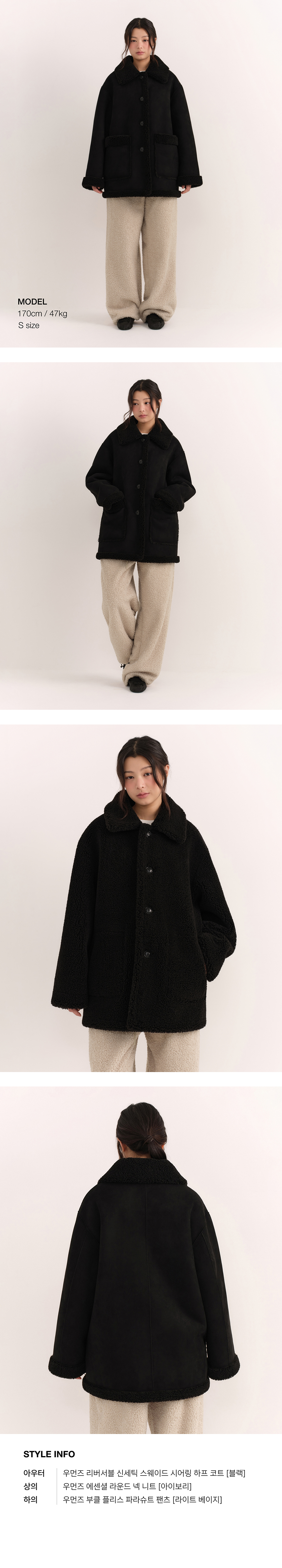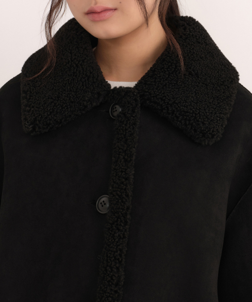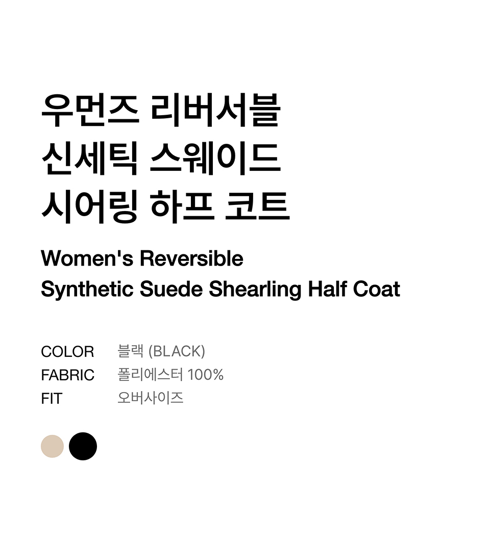 우먼즈 리버서블 신세틱 스웨이드 시어링 하프 코트 [블랙]