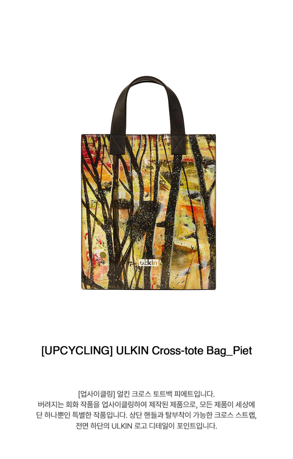 ULKIN(얼킨)은 예술가의 표현방식과 라이프 스타일을 기반으로 디자인을 진행하는 아티스틱 업사이클링 브랜드로, 예술성을 갖춘 트렌디함을 추구하는 브랜드입니다.