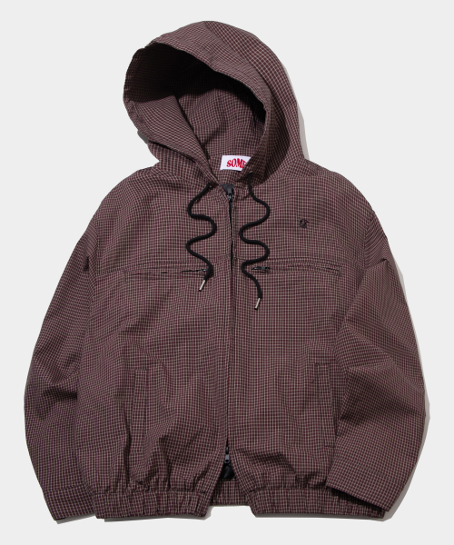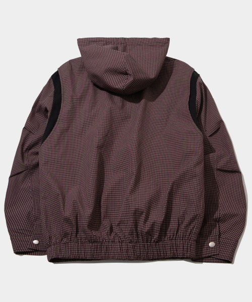 멀티 포켓 오버사이즈 액션팩 배색 체크 블루종 후드자켓 [레드]