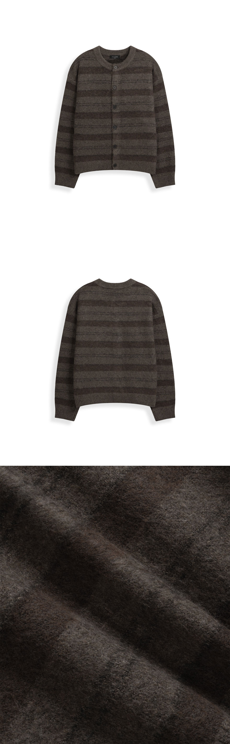 헤어리 스트라이프 크롭 니트 가디건 [브라운]