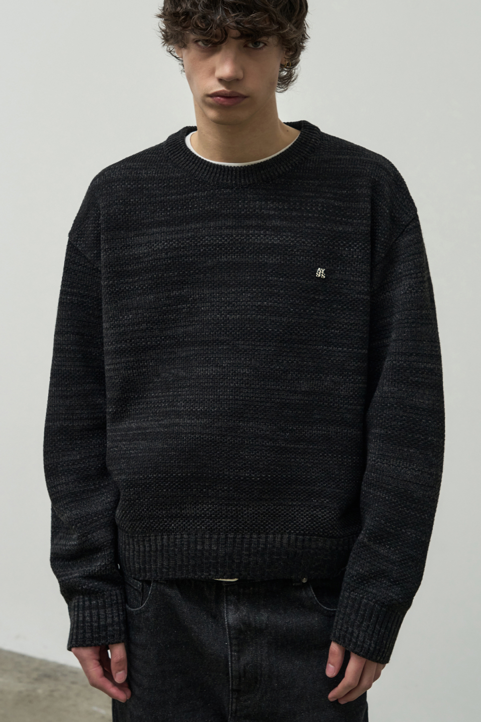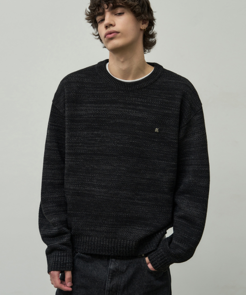 믹스드 크롭 라운드 니트 [블랙]