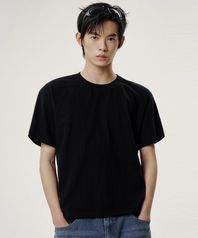 숄더 로우컷 크롭 반팔티 - 블랙