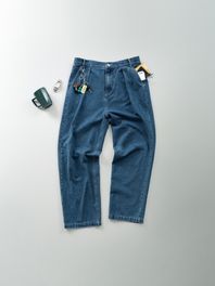 루즈 핏 핀턱 데님 팬츠 (딥 인디고)