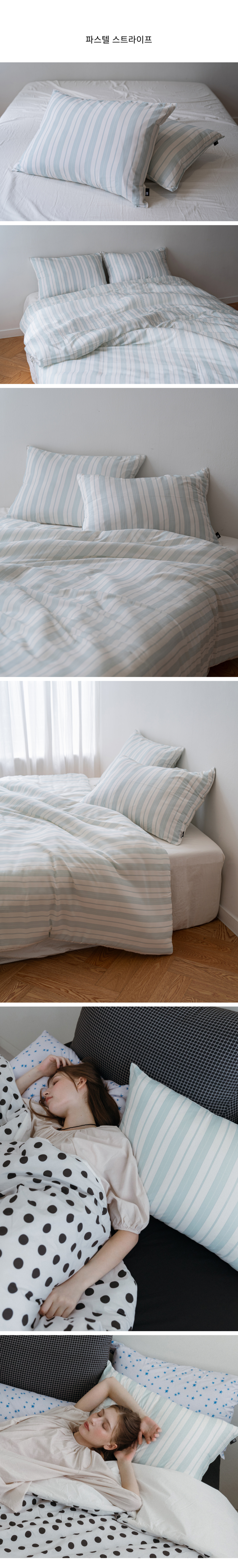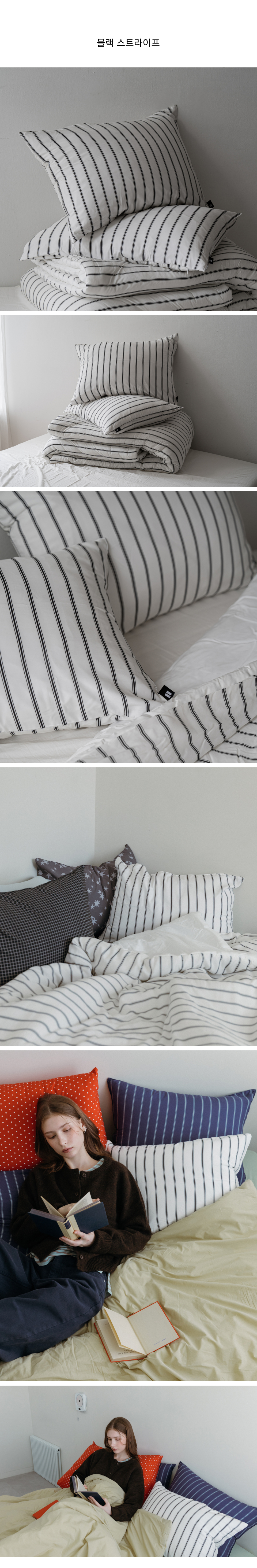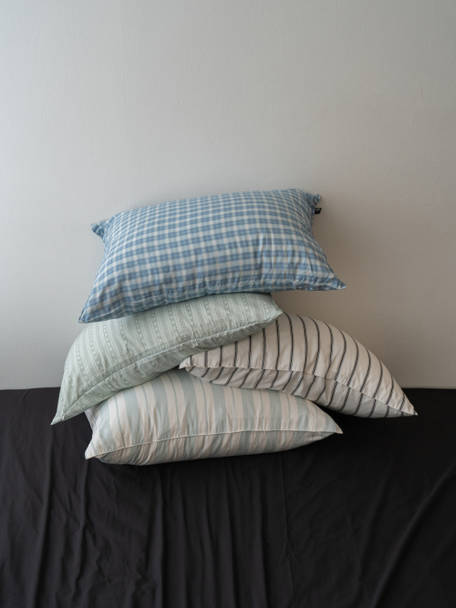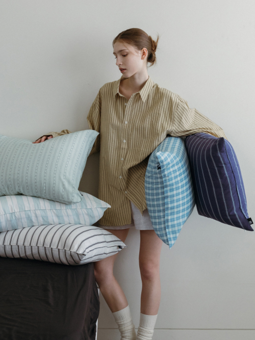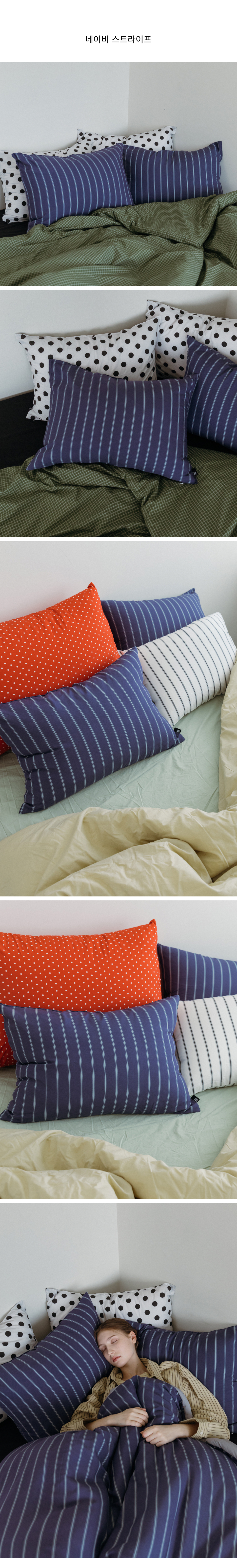 베이직 스트라이프 고밀도 순면 자루형 리본 베개커버
