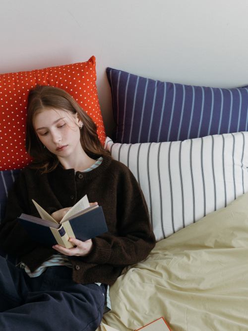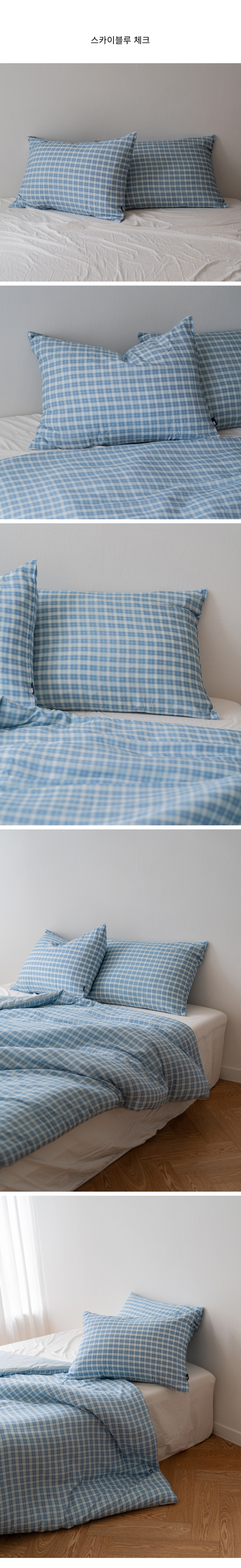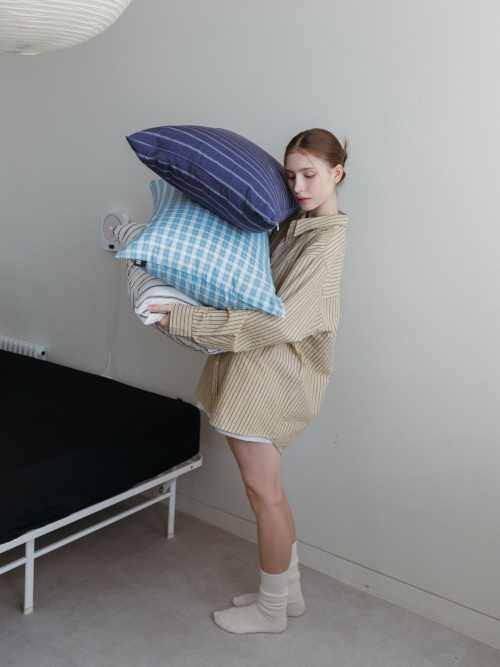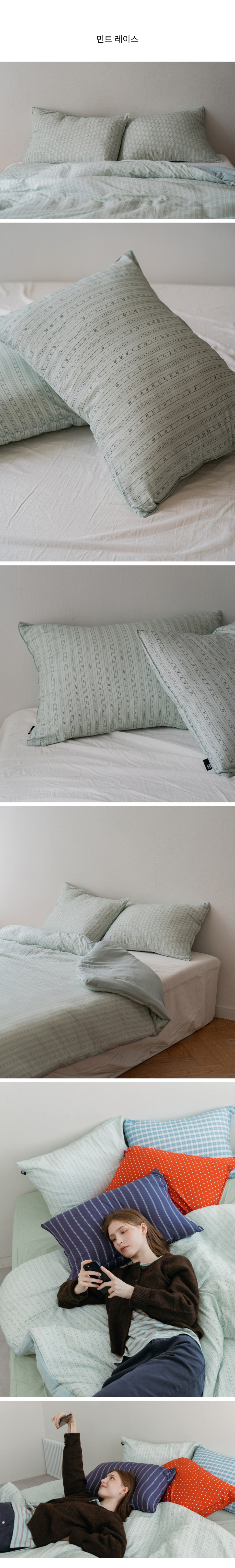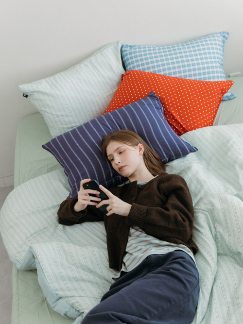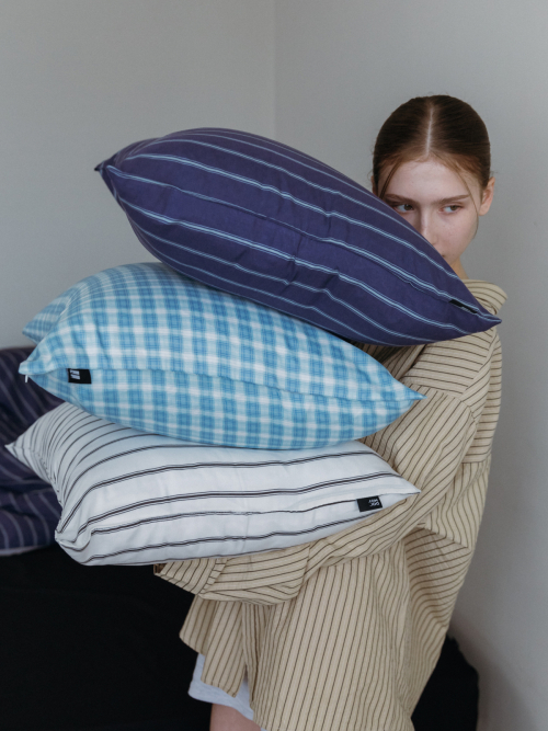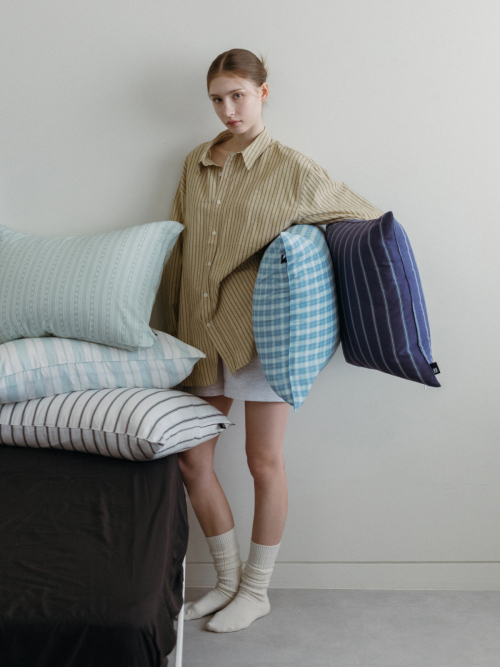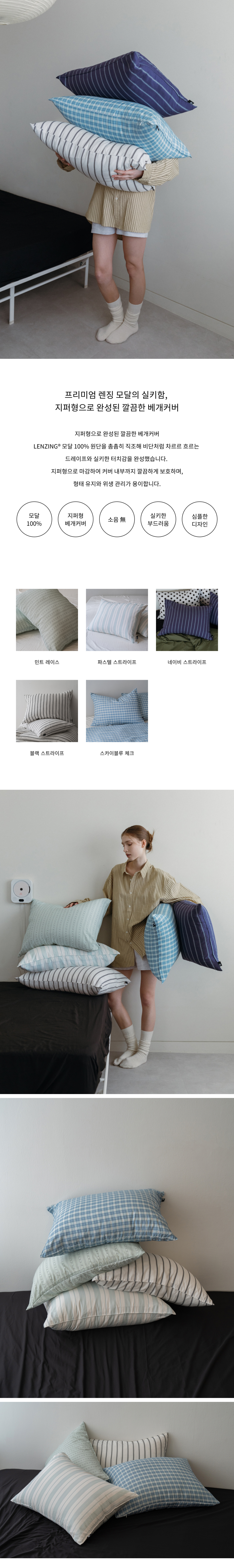 베이직 스트라이프 고밀도 순면 자루형 리본 베개커버
