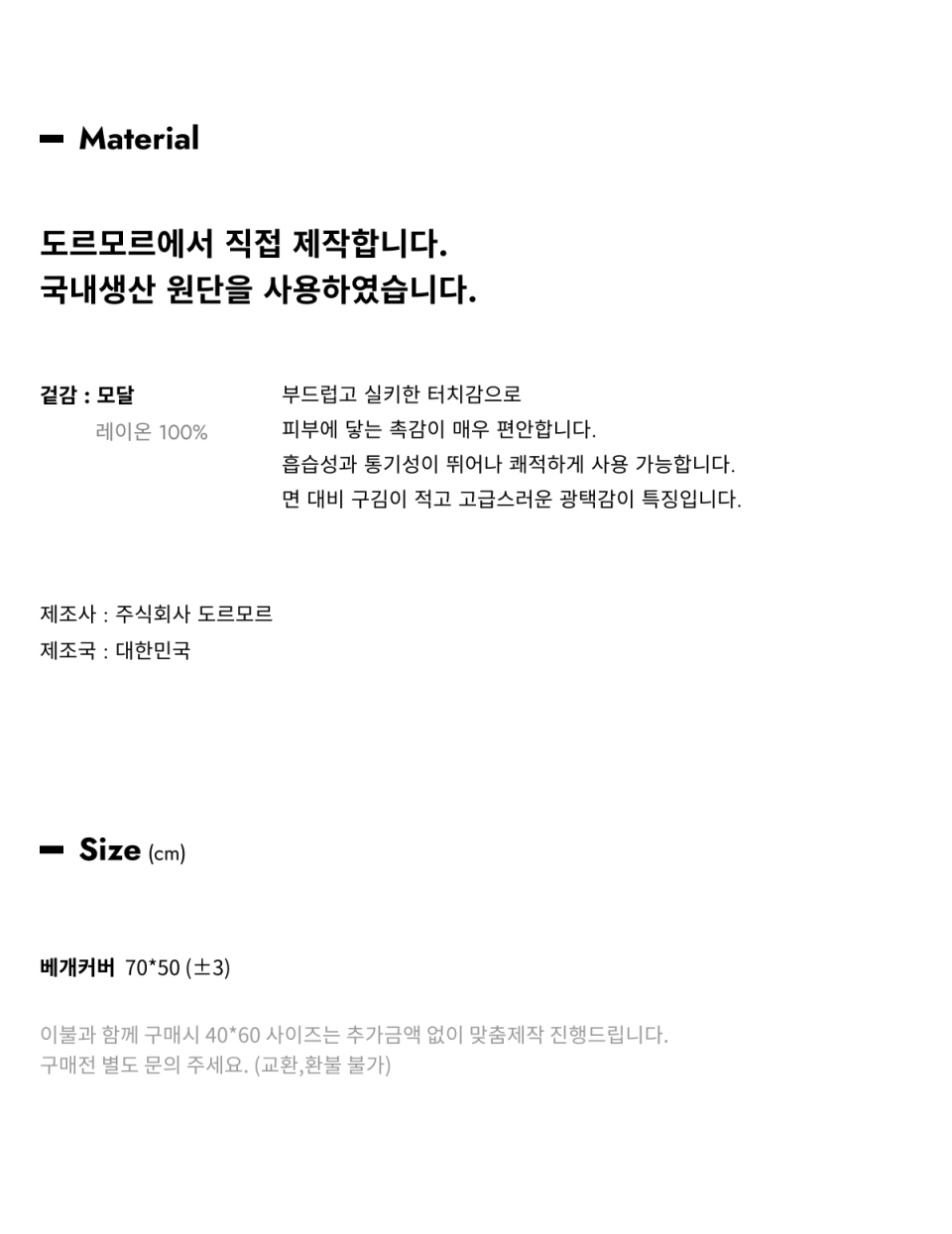 도르모르(DORMOR)는 `잠들다`라는 뜻의 `도르미르(dormir)`를 의미합니다. 수면과 관련된 모든 제품을 제작합니다. 30년 경력의 제조공장과 그래픽 디자이너의 협업으로 시작된 도르모르는 자체 공장에서 직접 생산&연구하여 편하고 좋은 원단으로 예쁜 이불을 선보입니다.