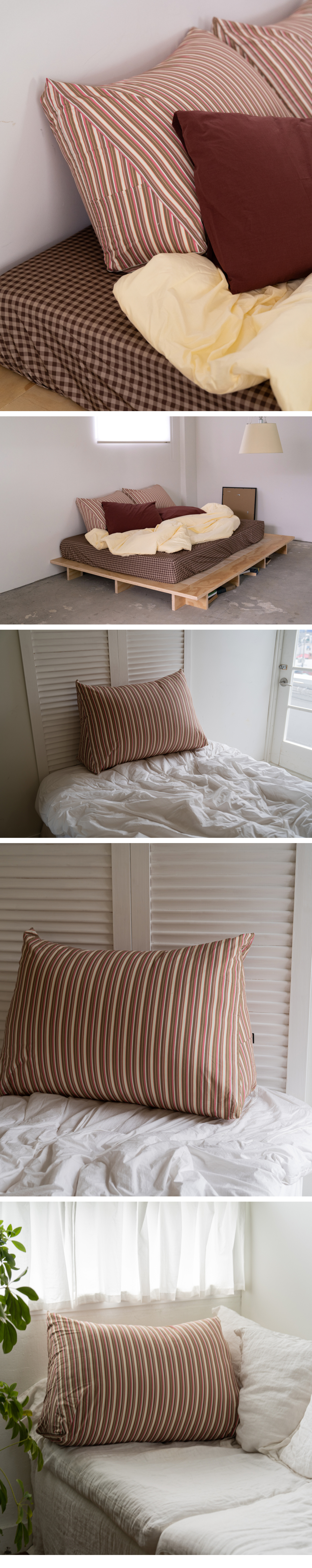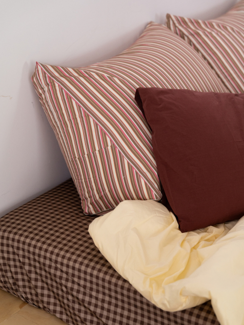 모카 스트라이프 고밀도 순면 삼각 등쿠션 커버