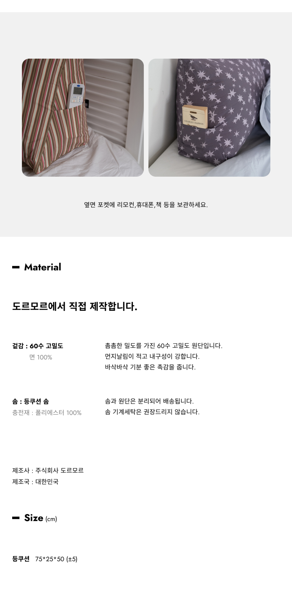 도트 고밀도 순면 삼각 등쿠션 커버