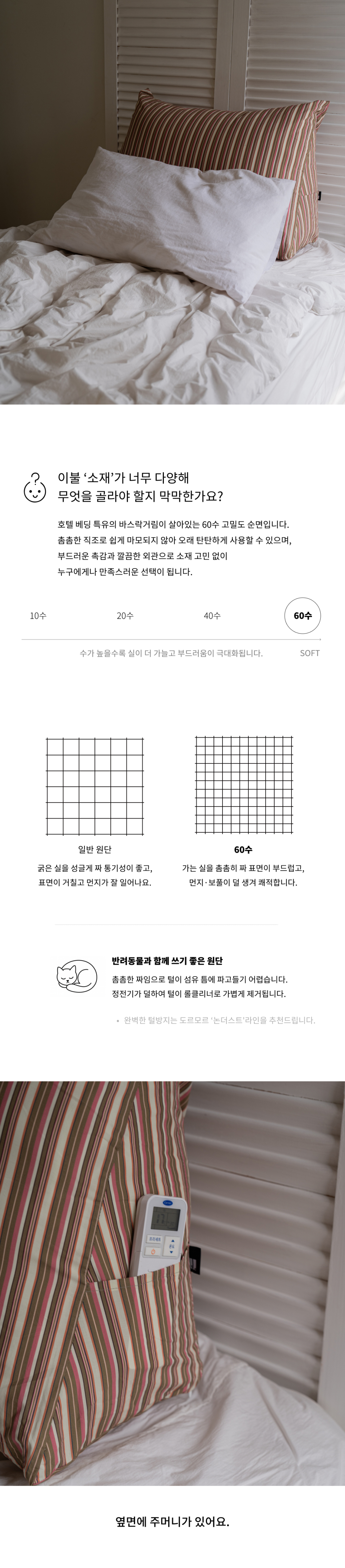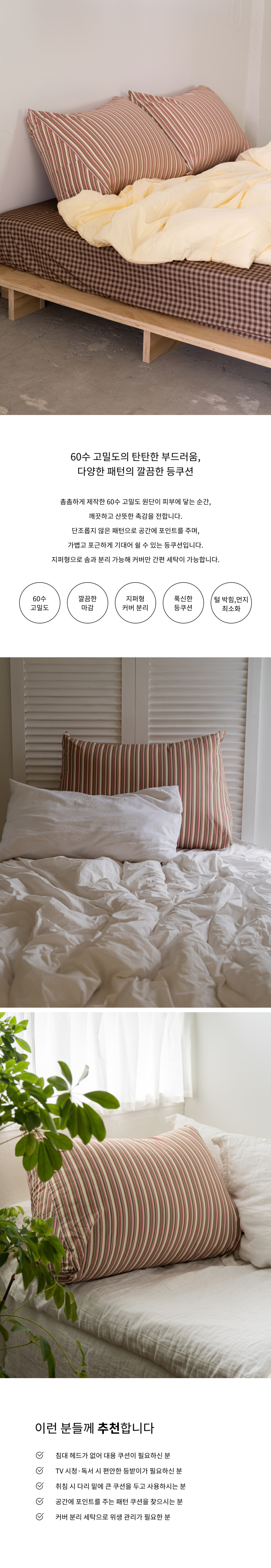 베이직 스트라이프 고밀도 순면 삼각 등쿠션 커버