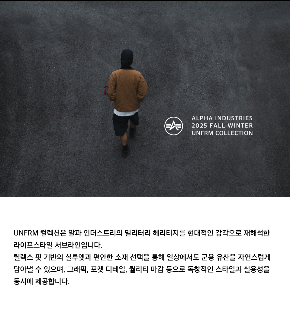 알파 인더스트리(ALPHA INDUSTRIES)는 1959년 테네시주 녹스빌의 한 공장에서 시작한 브랜드입니다. 미국의 육·해·공군 및 해병대원을 보호하는 플라이트 재킷이나 코트를 제공하는 공식 공급업체(오피셜 서플라이어)로 엄격한 밀스펙(군대에서 정해 놓은 기준)을 엄수하며 생산합니다. 특히 알파 인더스트리는 다른 업체와 달리 군수품과 일반인에게 판매되는 재킷에 등급의 차이가 없습니다. 알파 인더스트리의 제품은 미국은 물론 전 세계 각지의 미군 기지에서 활동하는 군인이나 파일럿, 지상 요원이 입는 재킷과 같은 그레이드의 아이템입니다.
