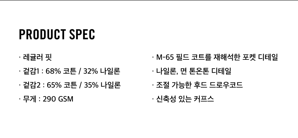 M-59 피쉬테일 모드 파카 M-65 올리브