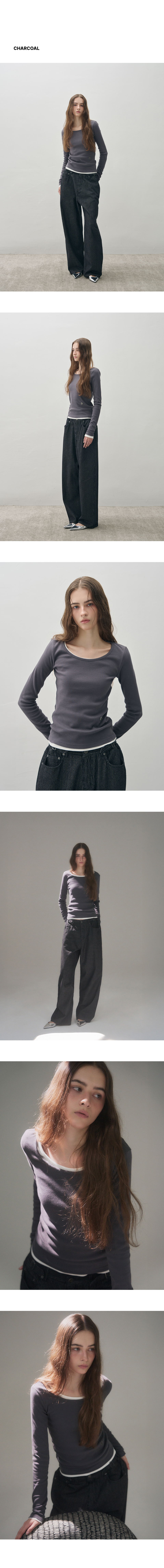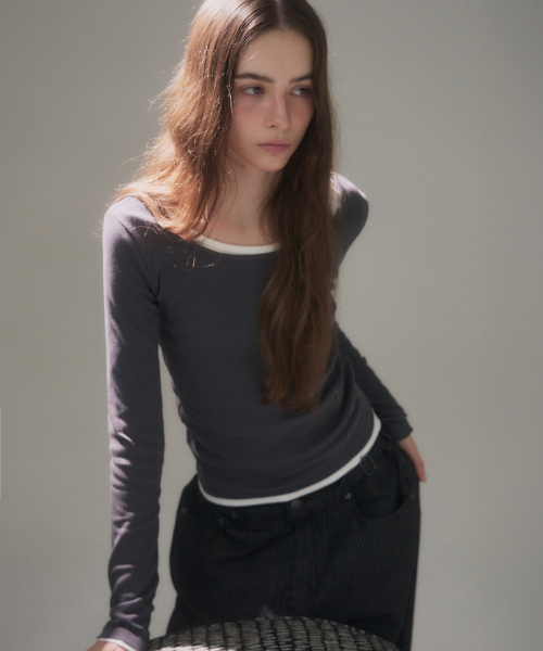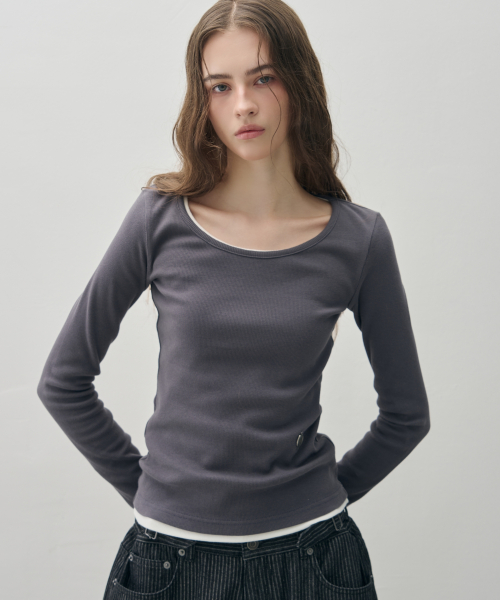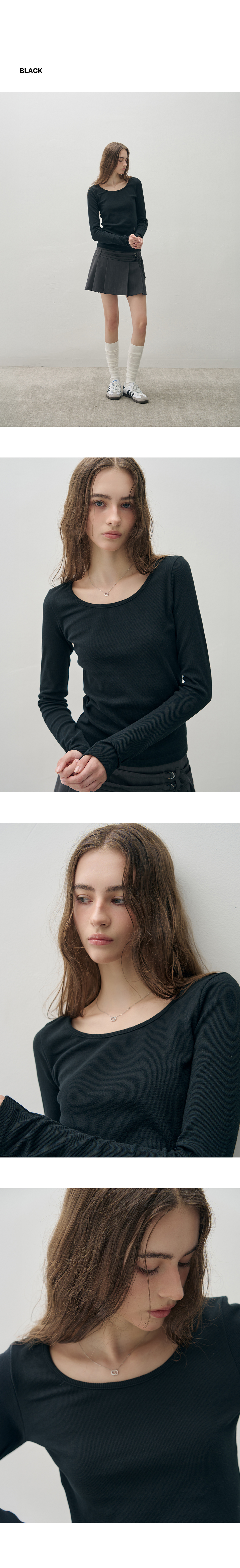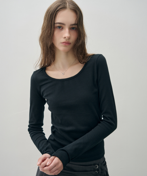 스쿱넥 리브드 롱 슬리브 [3COLOR]