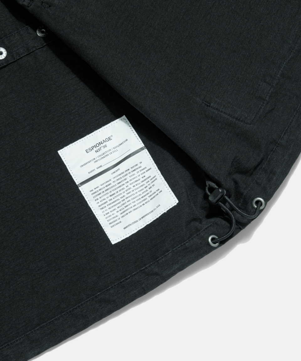 에스피오나지(ESPIONAGE)는 '밖을 보다' '숨겨져 있는 것을 발견한다'는 의미의 고대 프랑스어 ESPIRE에서 유래한 말로 지금은 타국의 비밀 정보를 수집하는 첩보 활동을 뜻하기도 합니다. 첩보 활동의 의미가 적진에서 은밀히 적들의 정보를 빼오는 것을 말하는 것처럼 에스피오나지가 만드는 아이템에는 숨겨져 있는 것을 찾아내는 과정을 포함하고 있습니다. 클래식, 밀리터리, 아웃도어 등 이미 만들어져 있는 의복을 베이스로 우리가 중요하게 생각하는 원단과 부자재, 기술, 핏 등의 요소들을 정확하게 탐구하고 수집해 조합, 재정의 혹은 재해석된 결과물을 만들고자 합니다. 사전적인 의미의 에스피오나지가 가지는 부정적인 첩보 활동의 이미지가 아닌 첩보 활동의 과정, 즉 본질에 대한 탐구와 조사 활동이라는 긍정적인 느낌을 전달하려 하며 수집된 정보를 하나의 작업물로 만들어내는 일련의 과정과 그렇게 완성한 에스피오나지의 아이템을 통해 다시 만드는 과정을 다시 유추하려는 생각들 모두 에스피오나지입니다.