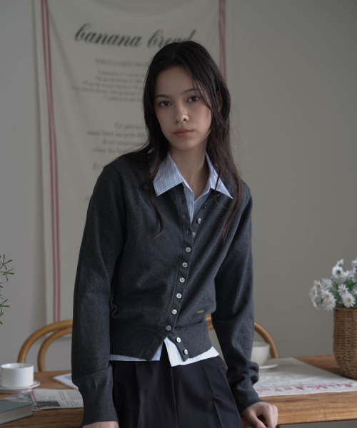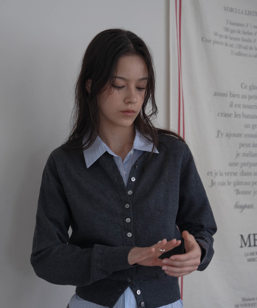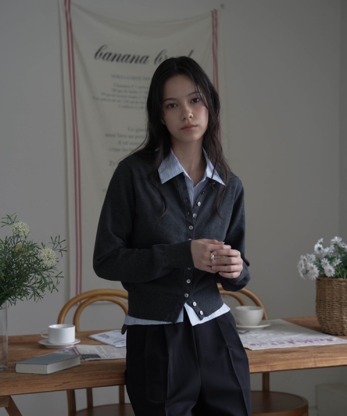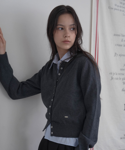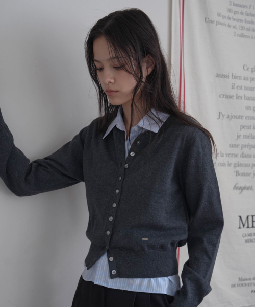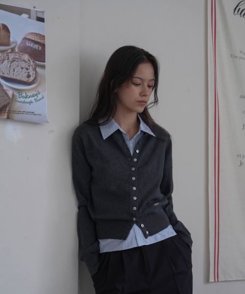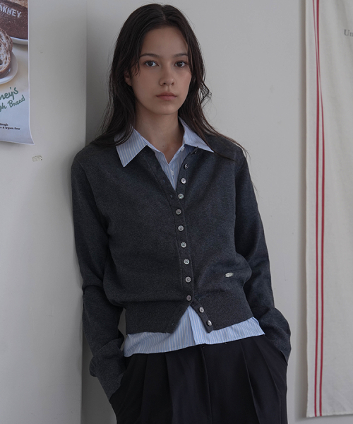 Signiture Pearl Button Cardigan [Charcoal]