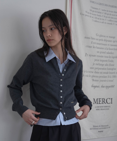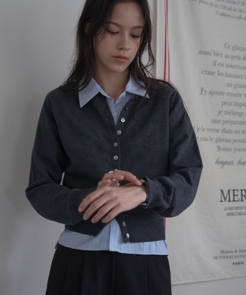 Signiture Pearl Button Cardigan [Gray]