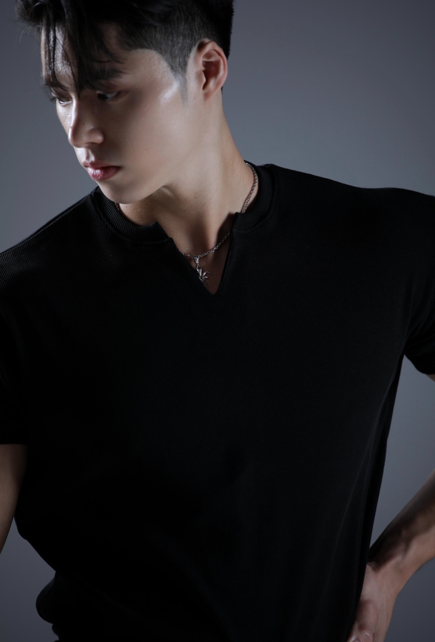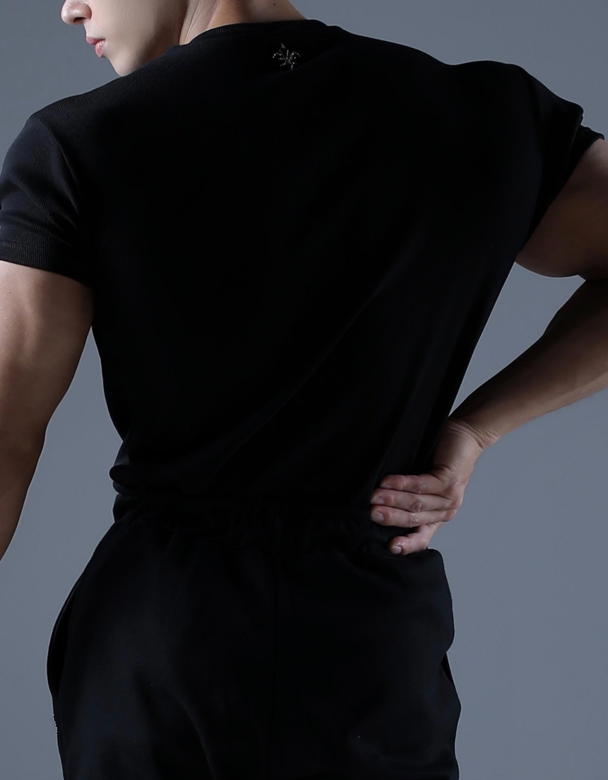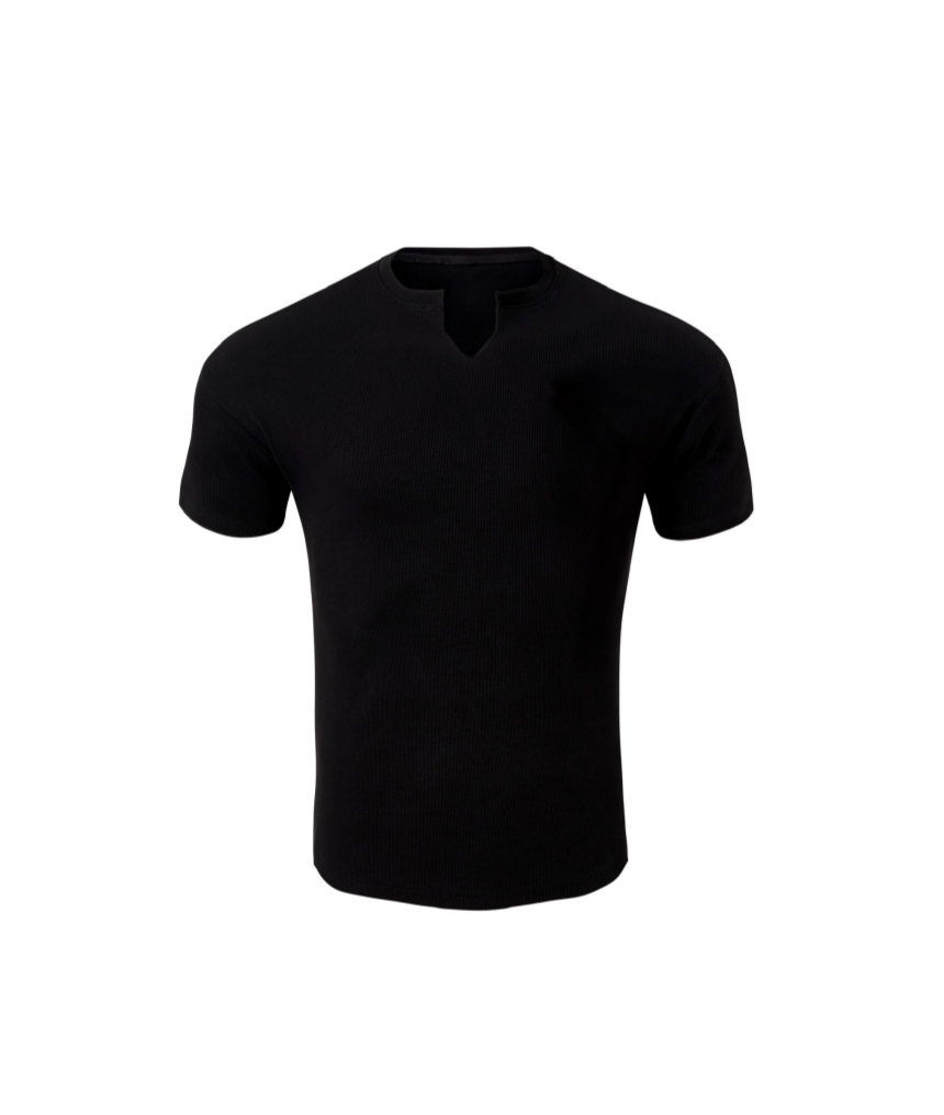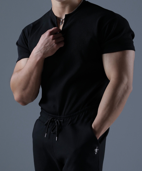 헨리넥 머슬핏 골지 니트 반팔 티셔츠