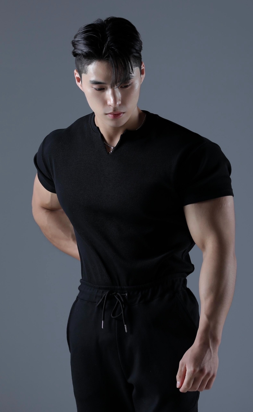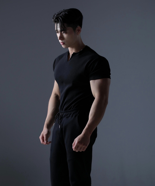 카미드 글로리 헨리넥 머슬핏 골지 반팔티셔츠 [그레이]