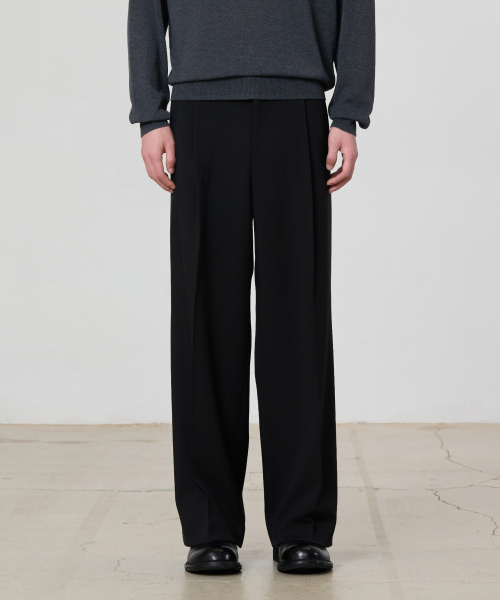 에센셜 세미 와이드 슬랙스 (BLACK)